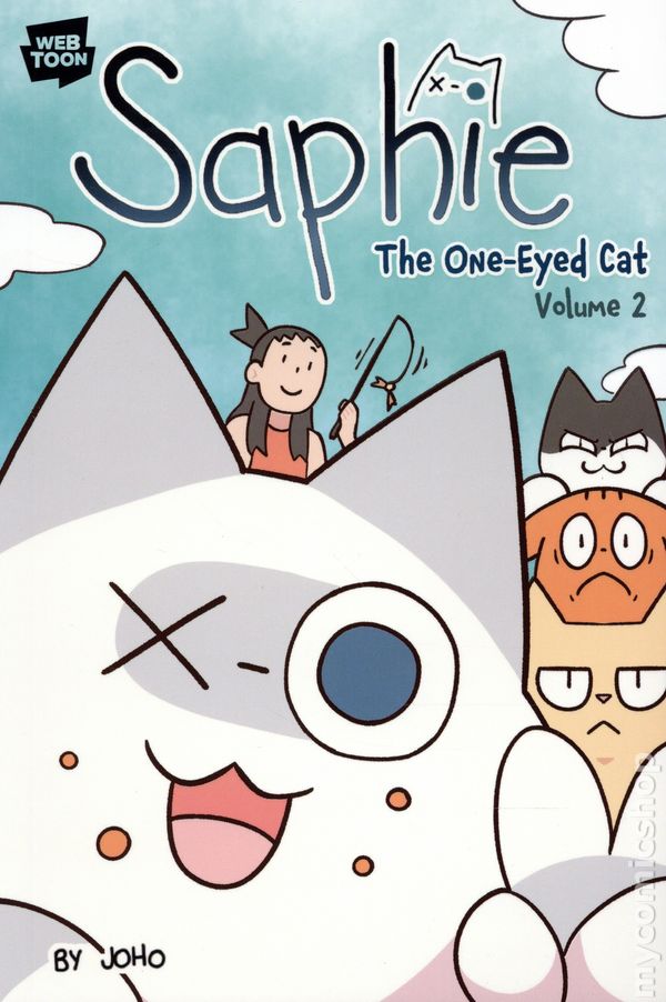 Volume 1 - 1st printing. Story and art by OHO. The hilarious hit Webtoon is now a graphic novel! Join Saphie the One-eyed Cat and her fellow house cat siblings as they zoom, scratch, and nap their way through life. It's purr-fect for fans of Pusheen! What exactly does a one-eyed cat do all day? Well, there's running, knocking things over, scratching things you're not supposed to, terrorizing your brothers, messing with your owner, stealing food, and generally causing mayhem left, right, and center! Saphie the One-Eyed Cat is a hilarious look at the life of a cat that knows what she wants -- and what she wants is to mess around! Softcover, 6-in. x 9-in., 128 pages, full color. All Ages Cover price $12.99.