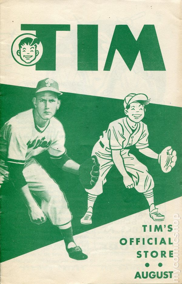 September 1950. Previously Superman-Tim (1942 Tim's Official Store). This series is a boys' clothing catalog and activity book focusing on baseball. B&W with a single color, 5 1/2 in. x 8 in. 16 pages.