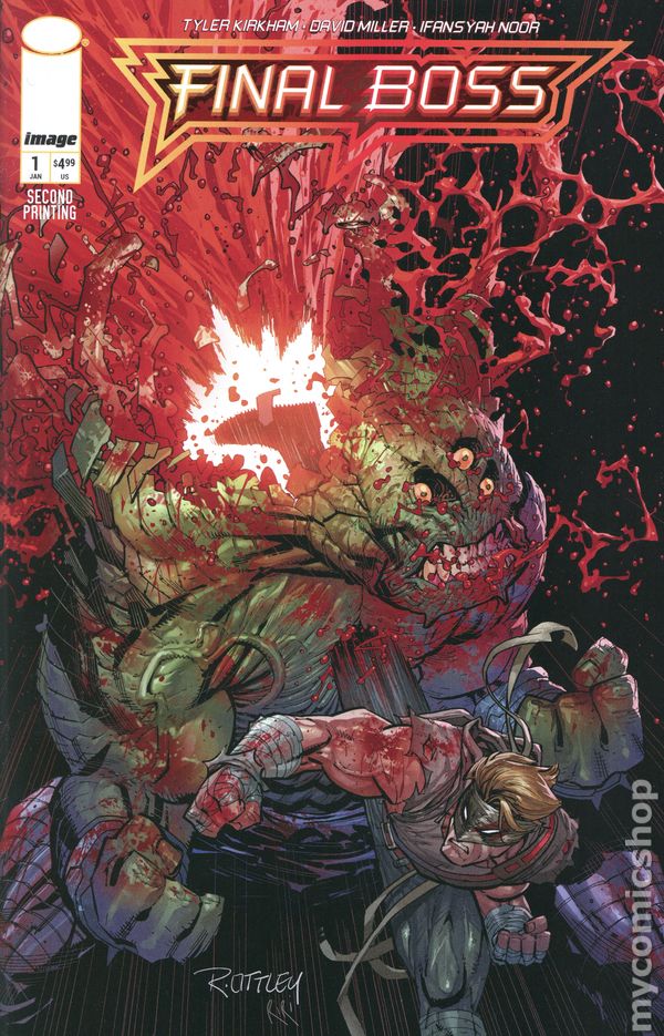 2nd Printing. (W) Tyler Kirkham (A) Tyler Kirkham, David Miller, Ifan Noor (CA) Ryan Ottley From the dynamic creator and artist, Tyler Kirkham (Amazing Spider-Man, Green Lantern), comes a thrilling new action hero: Tommy Brazen in FINAL BOSS! Get ready for an over-the-top adventure that's a high-octane nod to classic action stories. Trying to forge a new path, Tommy uses his newfound powers for various paid enforcer gigs and street fights, only to uncover a past far more complex than he ever imagined. 48 pages, full color, rated m. Cover price $4.99.