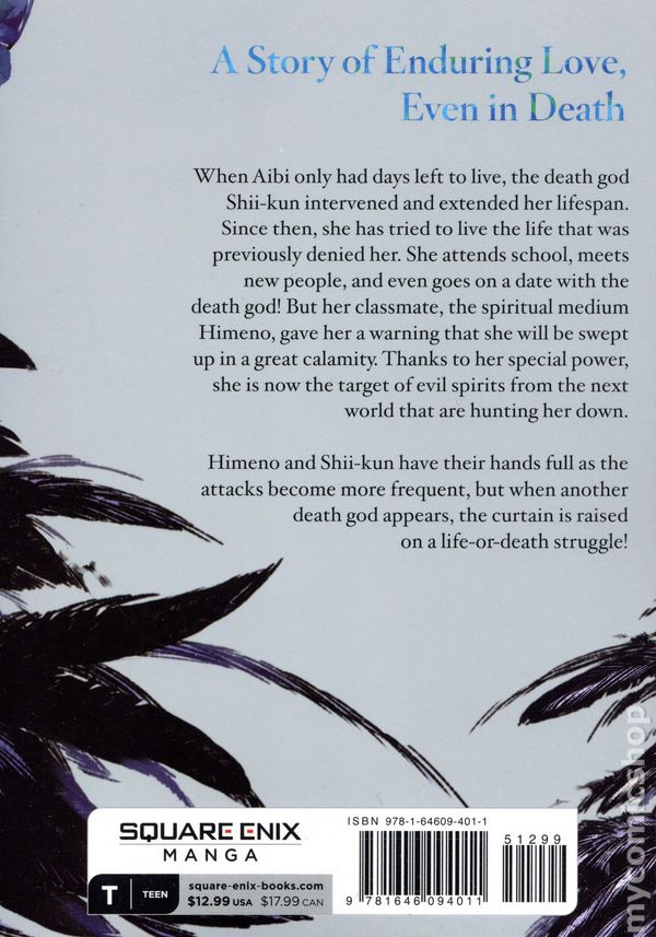 Volume 2 - 1st printing. Story and art by Hako Ichiiro. Translated by Nicole Wilder. The story of a death god who was welcomed for the first time and a young woman no longer welcome in her own world—a tale of love that even death cannot part. When Aibi had only seven days left to live, the death god extended her lifespan. Since then, she has savored every day and tried to live the life that was previously denied to her. She goes to school and even goes on a date with the death god! But thanks to the special power she possesses, she is still a target for evil spirits. Their attacks become more frequent, and when another god of death appears, the curtain is raised on a life-or-death struggle! Softcover, 5-in. x 7-in., 208 pages, B&W. Teen Cover price $12.99.
