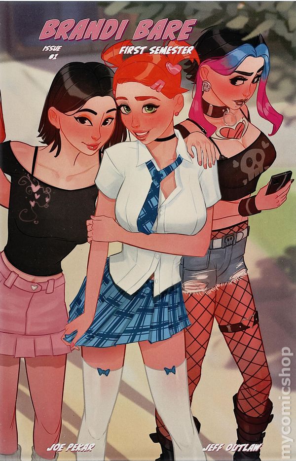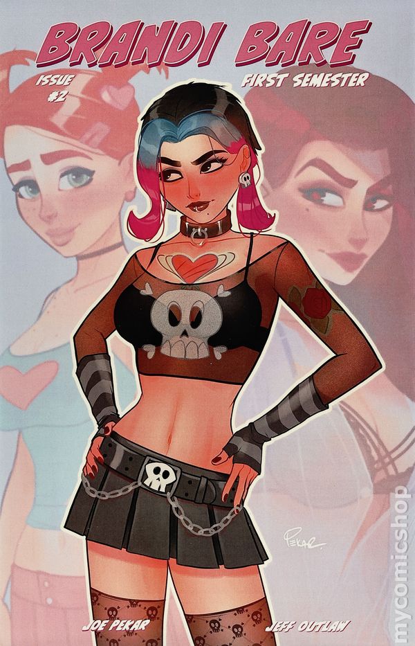 'A' Cover by Joe Pekar. Story by Joe Pekar and Jeff Outlaw. Art by Joe Pekar. Remastered Edition of the original "Brandi Bare" two-issue series, featuring new art and a few additional pages. The story surrounds the life of our titular character, Brandi, heading off to college and wanting to make new friends. Living on campus and the drama that comes with that, introducing us to new characters, like the Dean of Foreign Studies, (who may, or may not be a witch) and Brandi learning a bit more about herself!
