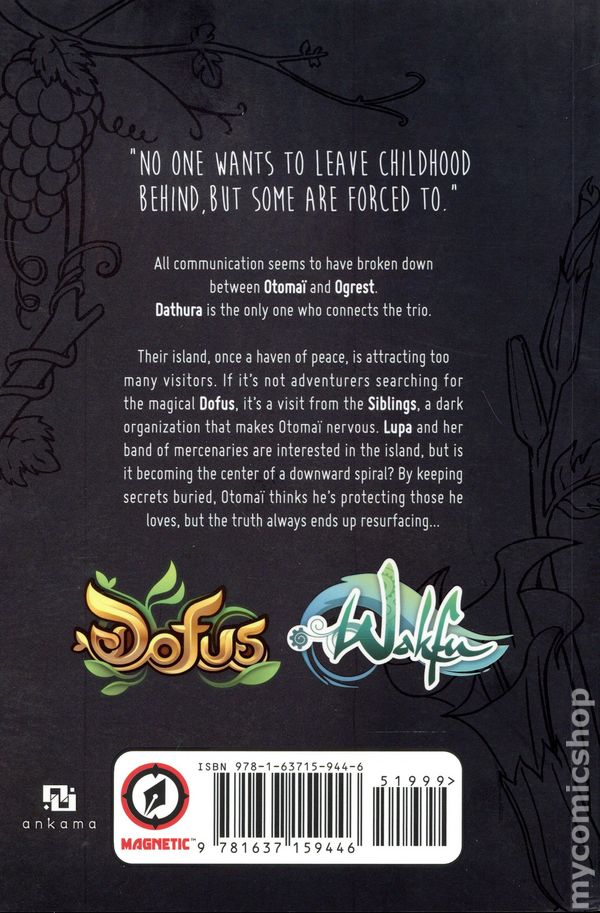 Volume 1 - 1st printing. Story and art by Mig. Set within the video-game universe of Wakfu, the popular online role-playing game and animated series on Netflix!On a paradise island far from the hustle and bustle of the old continent lives Ogrest, a tiny ogre who lives happily with Otomaï, his creator, and Dathura, a doll of divine beauty. When the Dofus—precious magical dragon eggs—disappear, all budding adventurers are rousted in search of the treasure. But Ogrests island is home to a Dofus that quickly draws greed and thirst for power that leads them all into a dark plot . . . Softcover, 6-in. x 9-in., 192 pages, B&W. Teen+ Cover price $19.99.