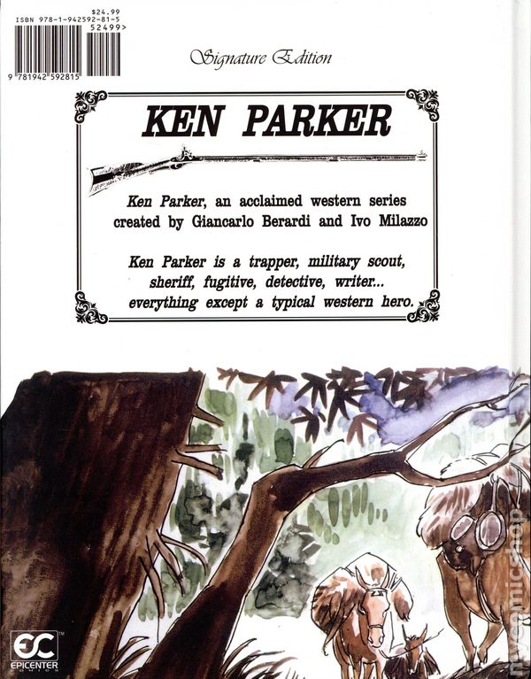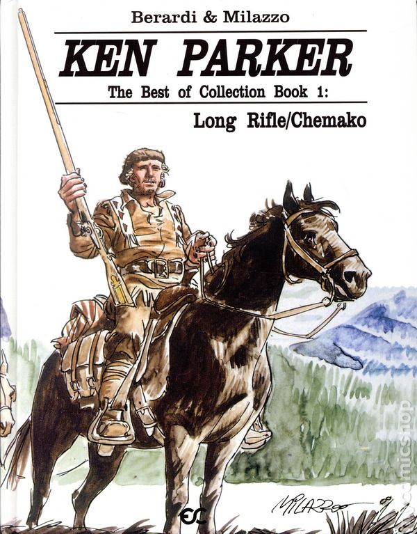 Volume 1 - 1st printing. "Long Rifle/Chemako!" Written by Giancarlo Berardi. Art and Cover by Ivo Milazzo. Introductions by Giancarlo Berardi and Marko Sunijc. The best of Ken Parker, an acclaimed, award-winning, game-changing western series. Ken Parker is a trapper, military scout, sheriff, fugitive, detective, writer... everything except a typical western hero. Here his story begins... Hardcover, 9-in. x 12-in., 202 pages, B&W. Cover price $24.99.