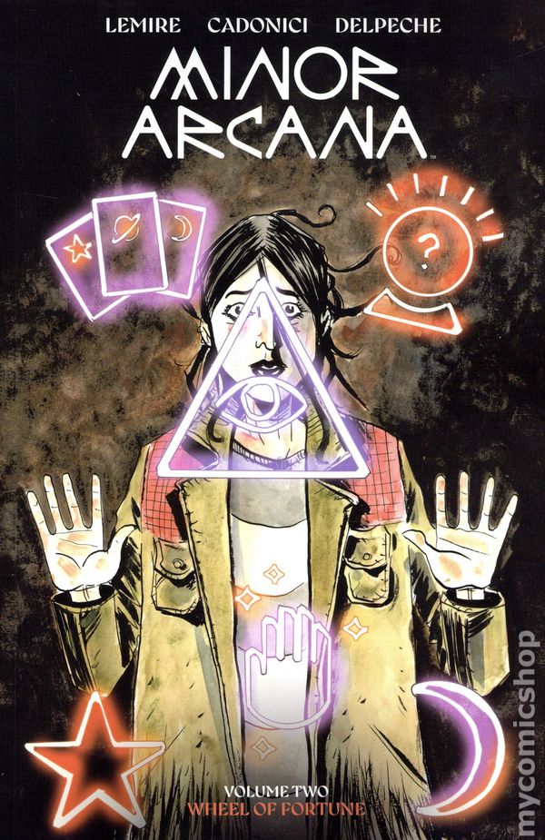 Volume 1 - 1st printing. Collects Minor Arcana (2024 Boom) #1-5. Story and art by Jeff Lemire. Theresas mother has fallen ill, and as a young bitter misanthrope, returning to her hometown to take care of her phony psychic of a mom is the last thing on Theresas bucket list. But when Theresa finds out these abilities might be real after all, it will up to her to reconcile with her ailing mother, confront the failures of her past, and help the townsfolk shed spent her life running from not so long ago… New York Times bestselling author Jeff Lemire (Descender, Black Hammer), garnering Eisner, Harvey, and Ignatz Awards and nominations for both written and illustrated works, as well as working with top talent like Andrea Sorrentino, Gabriel H. Walta, and Dustin Nguyen, debuts his first project at BOOM! Studios with this heart-gripping supernatural story about life, family, community, grief, mortality, and the power of human connection. Softcover, 144 pages, full color. Rated T+ Cover price $17.99.