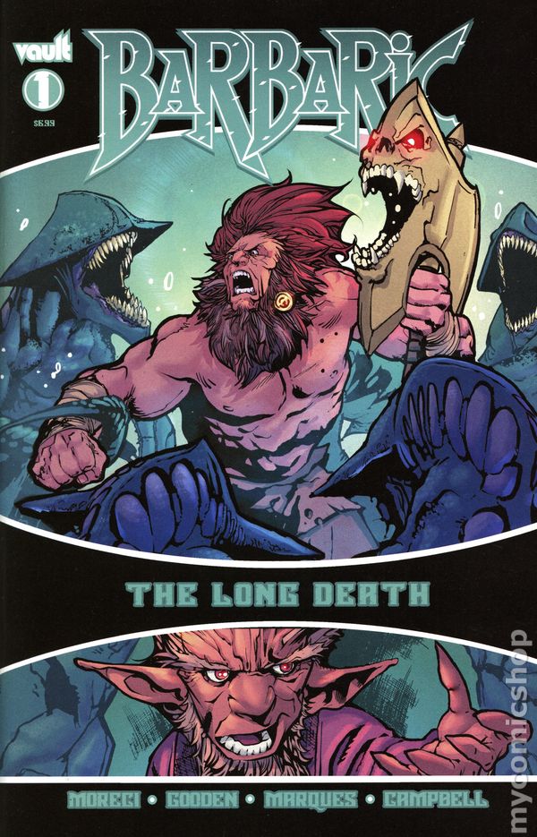 (W) Michael Moreci (A) Nathan Gooden (CA) Luana Vecchio Wha--you didnt think wed come back? BARBARIC loves you! AXE LOVES YOU! And hes giving you his heart, in the form of THE LONG DEATH #1. Our heroes slaughter their way ever closer to the answers to their big questions. Owen learns all about his curse; Soren learns about her curse; Axe gets drunk. The consequences are…BARBARIC. 40 pages, full color, not rated. Cover price $9.99.