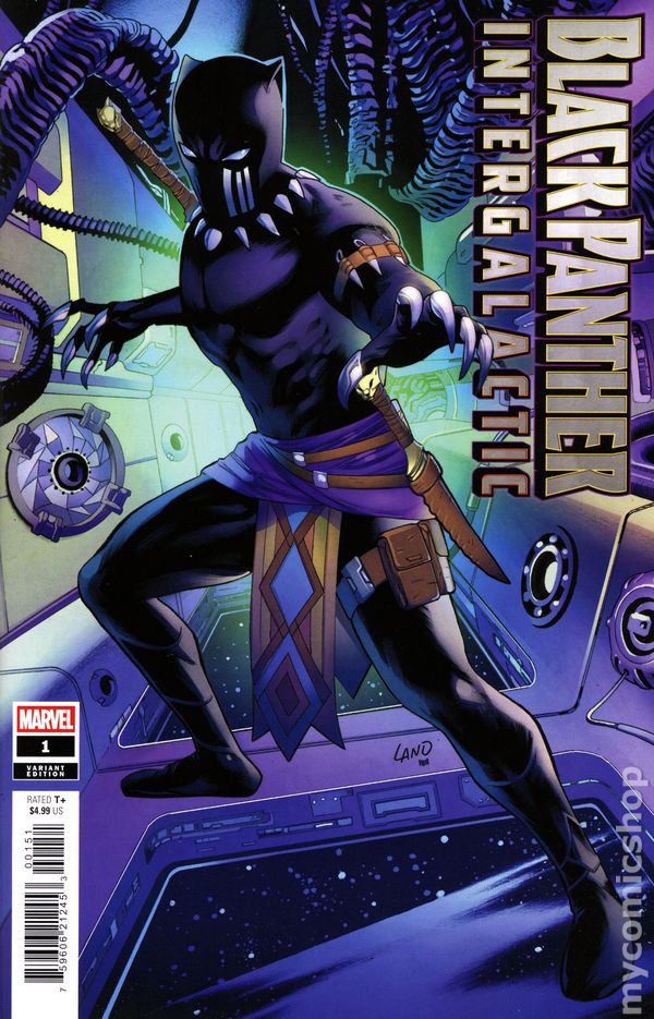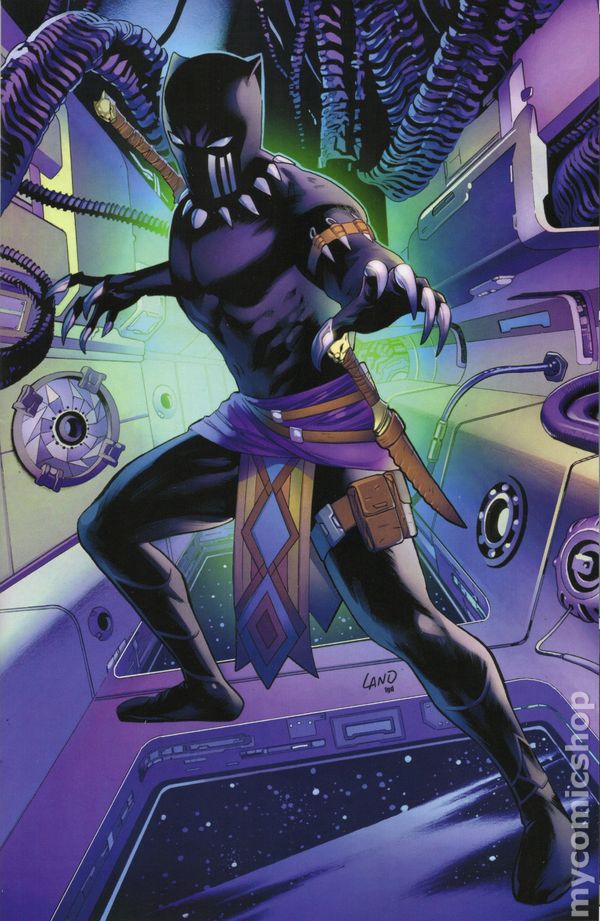 Limited 1 for 100 Retailer Incentive Variant Cover.(W) Victor LaValle (A) Stefano Nesi (CA) Greg Land THE INTERGALACTIC EMPEROR OF WAKANDA! T'CHALLA, the King of Wakanda, faces the challenge of uniting all of his kingdom - on Earth and in the stars! Before he can begin, though, someone - or something - steals him away to a mysterious planet where the BLACK PANTHER must fight for his life! SHURI, his sister, works to find him - but with the king and princess distracted, will someone else seize the title of Emperor of Wakanda?! Cover price $4.99.