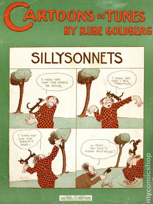 Sillysonnets Sheet Music - 1917. Written and composed by Rube Goldberg. Additionally illustrated front and rear by Goldberg. 10.5" x 13.5", 4 pages, B&W.
