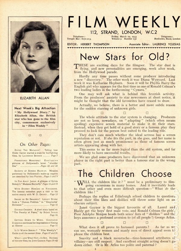 Film Weekly (1928-1939 English Newspapers Ltd.) UK Magazine comic books 1933
