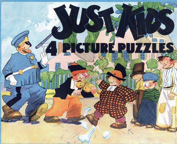Complete set of four Just Kids jigsaw puzzles with original illustrated box - 1932. Just Kids was a popular comic strip running from 1923-1950 in W. R. Hearst newspapers. Illustrated by Ad Carter. Box measures 10" x 8", each puzzle measures 9.75" x 7.5", full color.