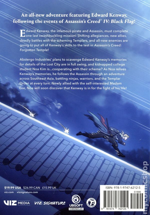 Volume 2 - 1st printing. Written by ARC. Art and cover by Tabii. Translated by Amy Cho. An all-new adventure featuring Edward Kenway, following the events of Assassins Creed IV: Black Flag! Edward Kenway, the infamous pirate and Assassin, must complete one last swashbuckling mission! Shifting allegiances, new allies, deadly battles with the scheming Templars, and all-new enemies are going to put all of Kenways skills to the test in Assassins Creed: Forgotten Temple! Abstergo Industries plans to scavenge Edward Kenways memories for details of the Lost City are in full swing, and kidnapped college student Noa Kim is...cooperating with their scheme? As Noa relives Kenways memories, he follows the Assassin through an adventure across Southeast Asia, battling ninjas, warriors, and the Templar Order at every turn. Newly allied with the self-interested Madam Lee, Noa will soon discover that Kenway is in for the fight of his life! Softcover, 5 3/4-in. x 8 1/4-in., 224 pages, full color. Older Teen Cover price $19.99.