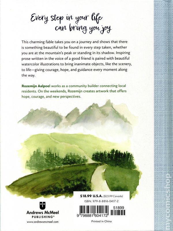 1st printing. Story and art by Rozemijn Aalpoel. Embark on a heartfelt journey of self-discovery and resilience with Rozemijn Aalpoel's inspirational parable about finding beauty and meaning in every step you take toward fulfilling your dreams. Every step in your life can bring you joy, even the difficult ones. Poetic prose and gorgeous watercolor landscapes invite readers to reflect on the passage of time, the beauty of nature, and the inspirational magic of pursuing your passions. Aalpoel emphasizes that while the view from the mountaintop is breathtaking, its the little steps along the way that truly enrich our lives. This inspiring fable is perfect for anyone contemplating making a life change, exploring a new opportunity, graduating, or beginning a new chapter. Hardcover, 6-in. x 8-in., 96 pages, full color. Cover price $18.99.