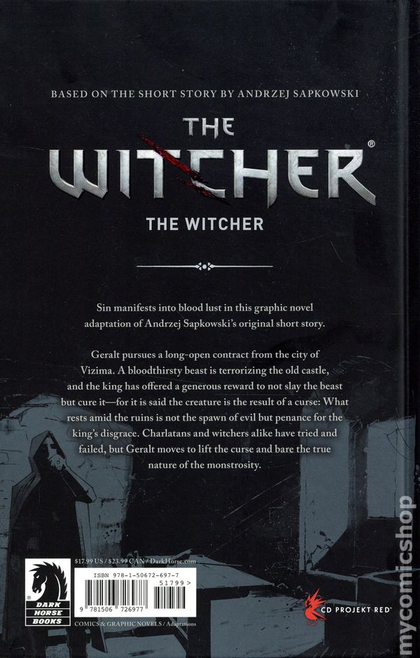 1st printing. Based on the Short Story by Andrzej Sapkowski. Adapted by Aleksandra Zielinska. English Adaptation by Stefan Kielbasiewicz. Art by Michael Dowling. Cover by Kai Carpenter. Sin manifests into bloodlust in this graphic novel adaptation of Andrzej Sapkowskis original short story. Geralt pursues a proclamation from a king of a bloodthirsty monster plaguing his palace. A hefty reward is offered to cure the beast, but not to kill it, for the king holds a secret—what lies beneath the palace is beyond the spawn of evil. Tried and failed by charlatans, Geralt sets out to claim the bounty—by decree of the king or by the pleas of those who wish the creature dead. This graphic novel is the fourth in a series of adaptations from Sapkowskis acclaimed short story collection The Last Wish! Hardcover, 56 pages, full color. Rated T+ Cover price $17.99.