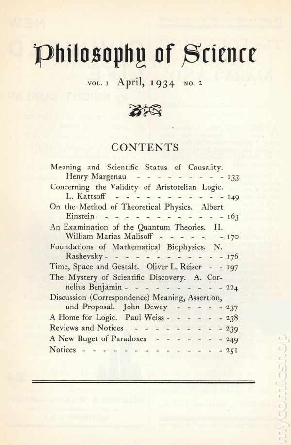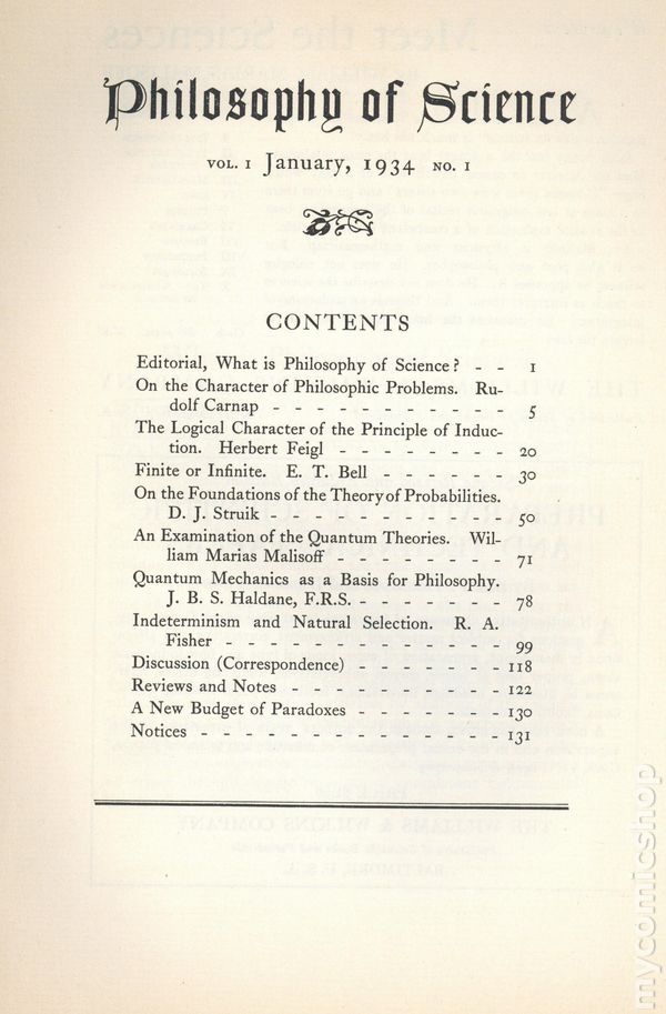 Philosophy of Science (1934 Williams and Williams Company/Cambridge University Press) comic books