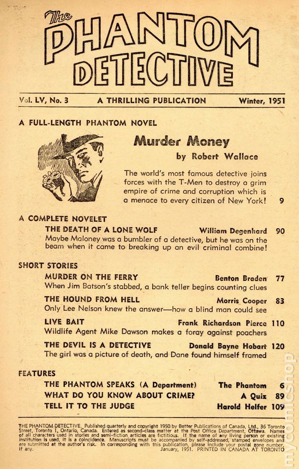Phantom Detective (1943-1951 Better Publications of Canada, Ltd.) Pulp Canadian Edition comic books