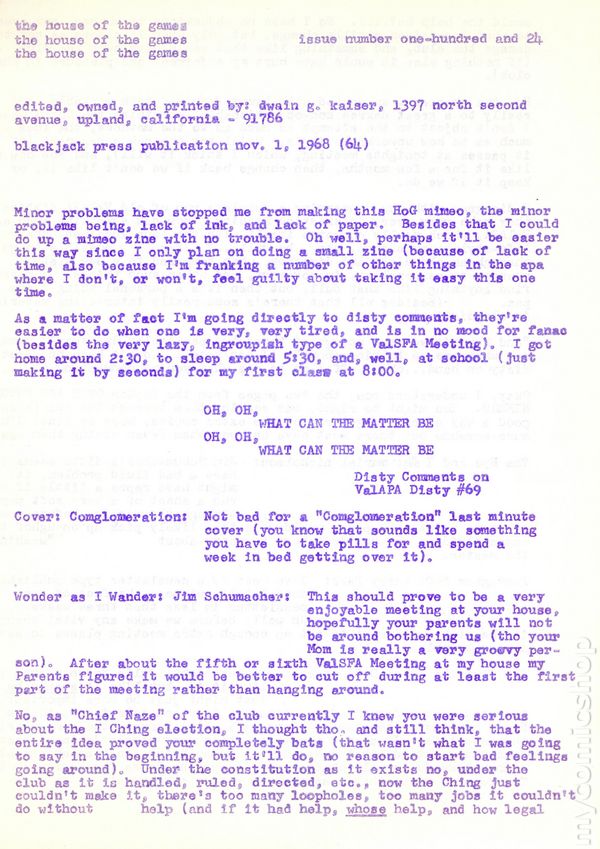 House of the Games (1964 - 1966 Dwain Kaiser) comic books 1967-1969