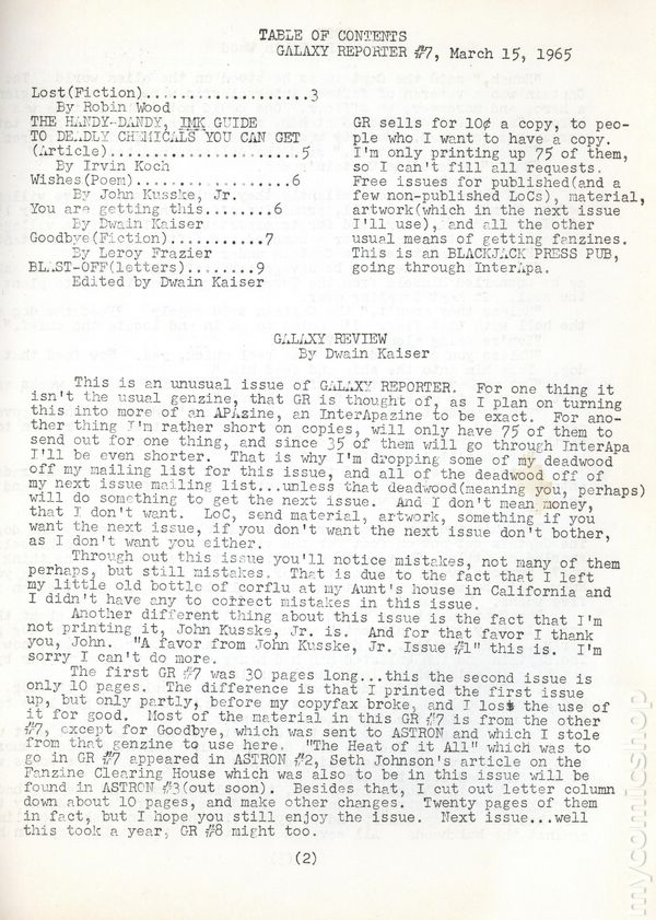 No. 7B - March 1965. After experiencing technical problems printing issue 7, Kaiser followed up with a trimmed down, new printing several months later. 8.5" x 11", 12 pages, B&W.