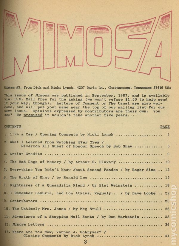 Mimosa (1982 - 2003 Richard and Nikki Lynch) comic books 1987