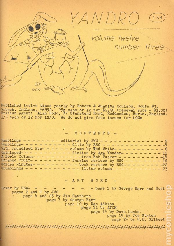 Yandro (1953 - 1986 Robert and Juanita Coulson) Fanzine comic books 1964