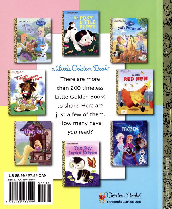 1st printing. Written by Rico Green. Art and cover by RH Disney. A Little Golden Book based on the Disney Frozen animated short Frozen Fever! Queen Elsa, Kristoff, and Olaf want to give Princess Anna the best birthday celebration ever! Based on the Disney Frozen animated short Frozen Fever, this Little Golden Book is perfect for boys and girls ages 2 to 5. Hardcover, 7-in.x 8-in., 24 pages, full color. All Ages Cover price $5.99.