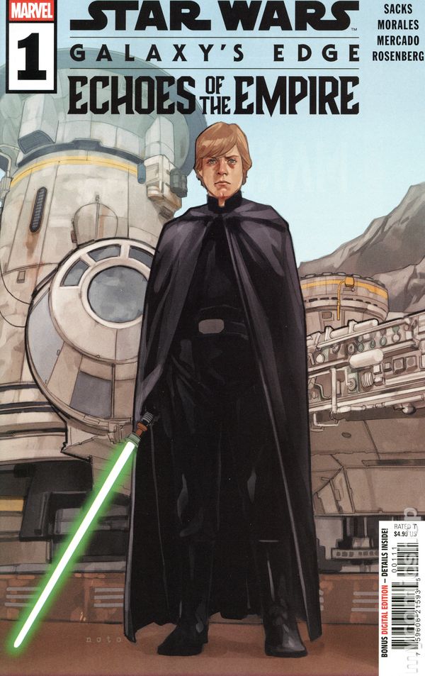 (W) Ethan Sacks (A) Jethro Morales; Roi Mercado (CA) Phil Noto NEW SECRETS OF GALAXY'S EDGE REVEALED! LUKE SKYWALKER, PRINCESS LEIA and CHEWBACCA head to BATUU in search of important intel and stumble upon a dangerous relic - one that puts them on a collision course with the EMPIRE! Galaxy's Edge writer Ethan Sacks and artists Jethro Morales & Roi Mercado tell an all-new story inspired by Star Wars: Galaxy's Edge. Cover price $4.99.
