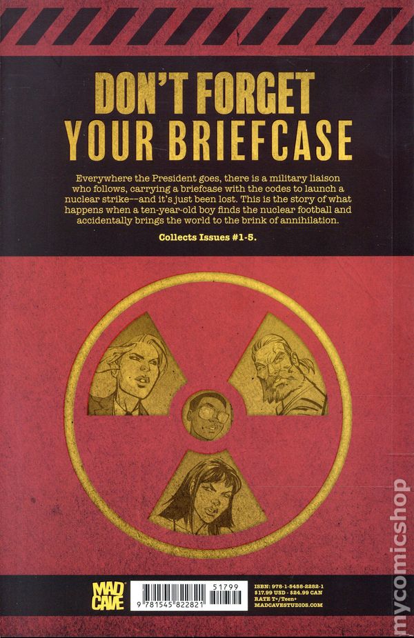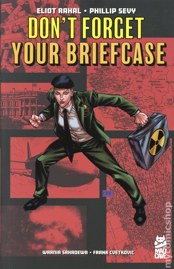 1st printing. Collects Don't Forget Your Briefcase (2025 Mad Cave) #1-5. Written by Eliot Rahal. Art and cover by Phillip Sevy. Everywhere the President goes, there is a military liaison who follows, carrying a briefcase with the codes to launch a nuclear strike––and its just been lost. This is the story about what happens when a ten-year-old boy finds a nuclear football and accidentally brings the world to the brink of annihilation. Softcover, 128 pages, full color. Teen+ Cover price $17.99.