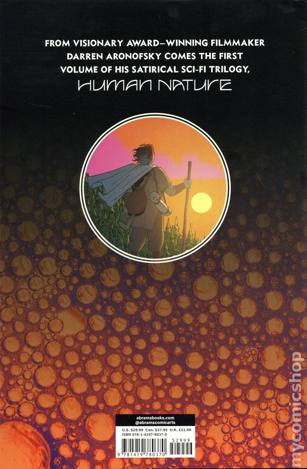 Volume 1 - 1st printing. Written by Darren Aronofsky, Ari Handel, and Jeff Welch. Art and cover by Martin Morazzo. From Academy Award–winning filmmaker Darren Aronofsky comes the first volume of his satirical sci-fi trilogy, Human Nature. From the visionary minds behind Black Swan and The Whale, Darren Aronofsky and Ari Handel team up with writer Jeff Welch and acclaimed artist Martín Morazzo (Ice Cream Man) for Human Nature, a razor-sharp social-satire trilogy about ambition, power, and humanitys desperate quest for immortality. Meet Duke: once just an ordinary nobody, now an ego-driven billionaire chicken magnate with nearly limitless wealth and power. But even endless fortune has limits—and Duke is obsessed with breaking the final barrier: death itself. Can he buy the key to defy death, or has his unchecked ambition finally gone too far? Overflowing with twisted humor, surreal adventures, and dazzling visuals, Human Nature hurtles readers into a bizarre yet unsettlingly familiar future, confronting unimaginable obstacles at every turn. Its a gripping, audacious ride that only Aronofsky could conjure—one that races forward at breathtaking speed, promising even greater thrills as the trilogy unfolds. Hardcover, 208 pages, full color. Mature Readers Cover price $29.99.