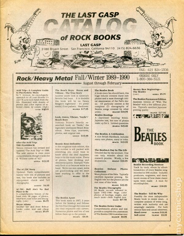 Last Gasp Catalog of Rock Books (1989 Last Gasp) comic books
