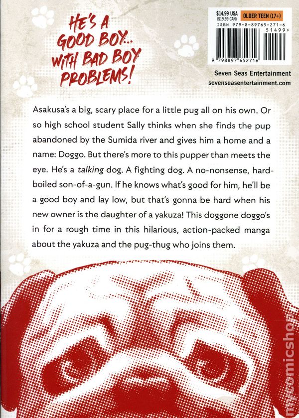 Volume 1 - 1st printing. Written by Ryuki Onuma. Art and cover by Hikari Komaru. Translated by Matthew Jackson. When a young woman rescues a strange pug, she gains more than a loyal friend—she gets her very own bodyguard! A hilarious, action-packed manga about the yakuza and the dog who joins them. Asakusas a big, scary place for a little pug all on his own. Or so high school student Sally thinks when she finds the pup abandoned by the Sumida river and gives him a home and a name: Doggo. But there's more to this pupper than meets the eye. He's a talking dog. A fighting dog. A no-nonsense, hard-boiled son-of-a-gun. If he knows what's good for him, hell be a good boy and lay low, but that's gonna be hard when his new owners the daughter of a yakuza! This doggone doggo's in for a rough time in this hilarious, action-packed manga about the yakuza and the pug-thug who joins them. Softcover, 5-in. x 7-in., 206 pages, B&W. Rated T+ Cover price $14.99.