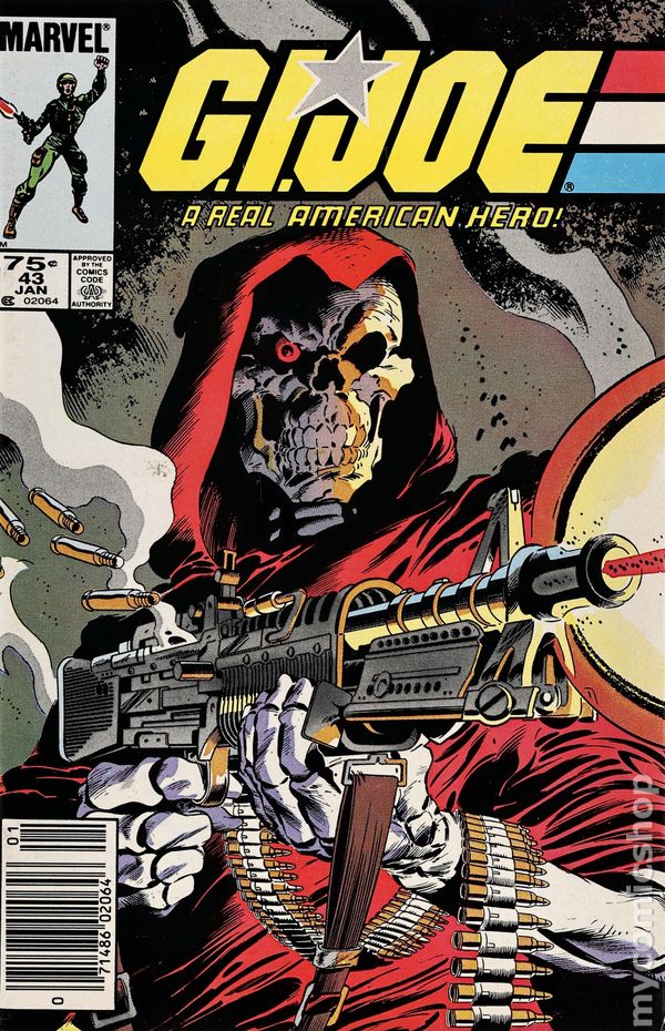Direct Edition. Giant size issue - "Operation: Lady Doomsday!" Written by Larry Hama. Art by Herb Trimpe and Bob McLeod. Cobra is a sinister terrorist organization bent on world domination! There is only one thing standing in their way - GI Joe, the free world's elite strike force and a band of highly trained super soldiers who fight for freedom, justice and the American way. Yo, Joe! 1st appearance of Hawk, Snake-eyes, Scarlett, Clutch, Rock 'n' Roll, Stalker, Breaker, Flash, Grand Slam, Short-Fuse, Grunt, Cobra Commander and the Baroness. Includes back-up story "Hot Potato!" Written by Larry Hama. Art by Don Perlin and Jack Abel. Starring Snake-eyes, Scarlett, and Rock 'n' Roll. Also includes a 2-page diagram of "The Pit," the G.I. Joe Command Center. 52 pages, FC. Cover price $1.50.