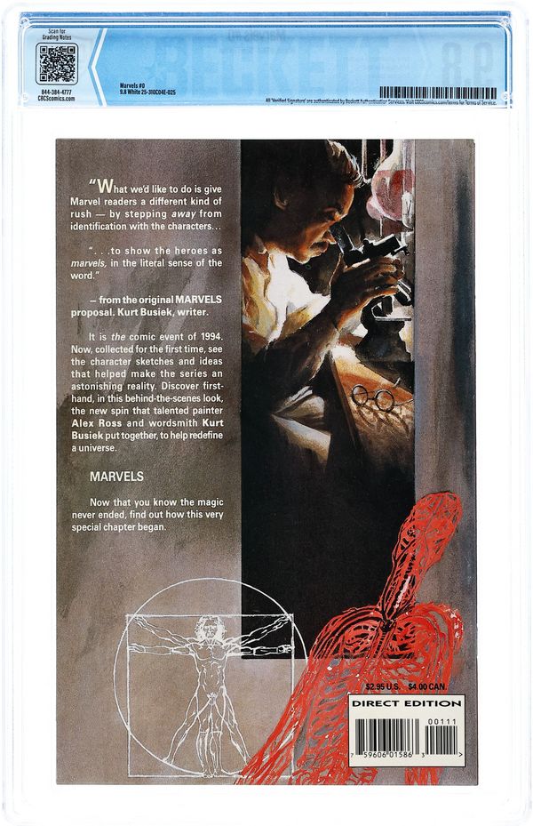 Starts Jan 19 Published four months after the conclusion of the landmark four-issue series, Marvels #0 includes pin-ups and character sketches by Ross, text pieces on the making of the series, and a 12-page prologue with a more detailed origin of the Golden Age Human Torch. Written by Kurt Busiek, with painted art by Alex Ross. Cover price $2.95.