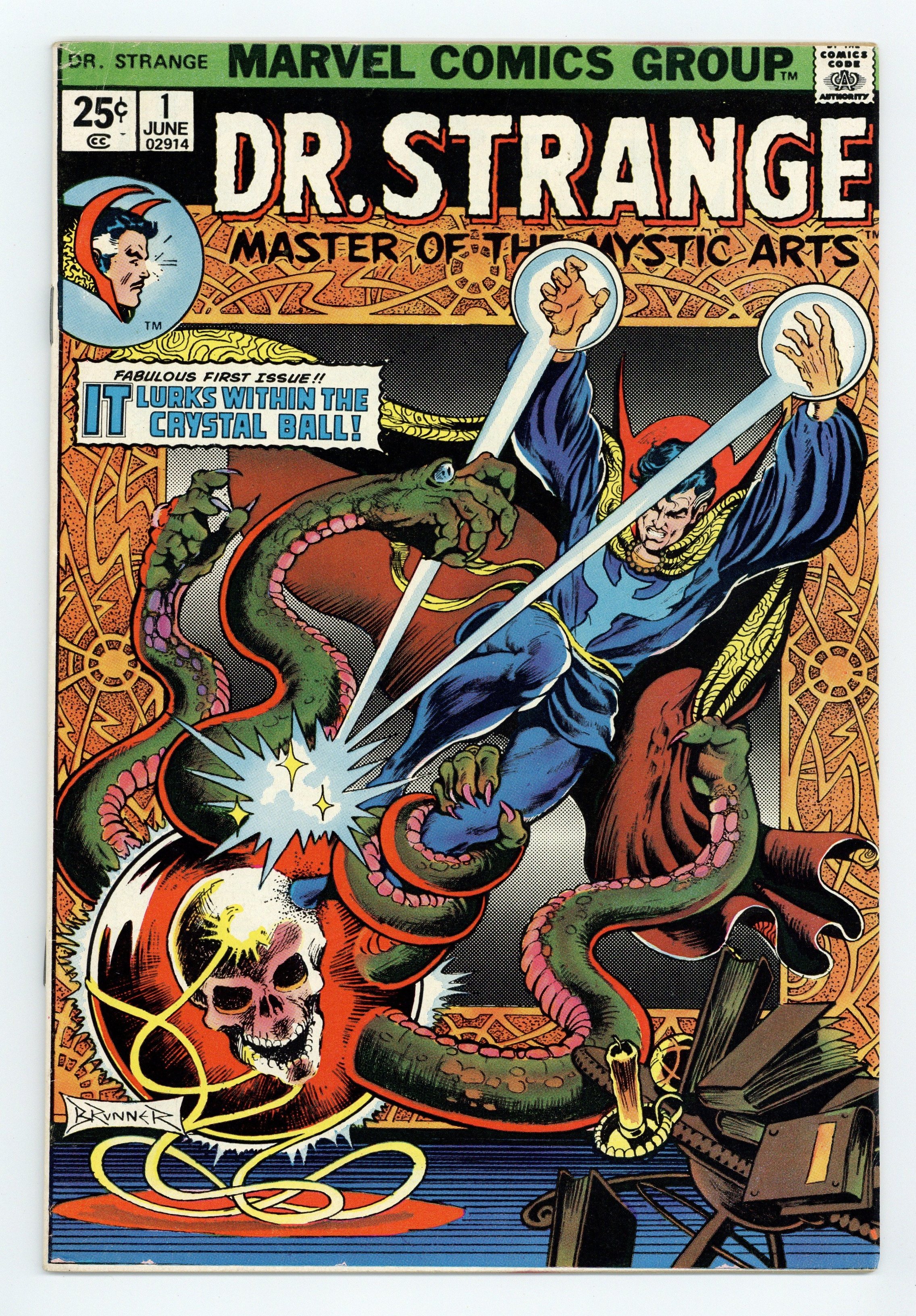 First appearance of the Silver Dagger in the beginning of a classic Dr. Strange storyline, Through an Orb Darkly!, script by Steve Englehart (co-plot, script) and Frank Brunner (co-plot), pencils by Frank Brunner, inks by Dick Giordano; Silver Dagger infiltrates the Sanctum Sanctorum, throws silver dagger into Strange's back, and takes the Eye of Agamotto amulet and Clea; Strange is pulled into necromantic Orb of Agamotto and cryptic hookah-smoking caterpillar (first appearance); continued from Marvel Premiere 14. The letters page contains Marvel Value Stamp series A #23 (Sgt. Fury). Cover price $0.25.