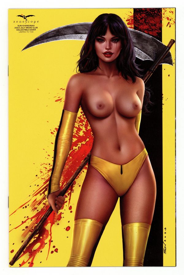 Starts May 4 2023 July Movie Club Topless Collectible Cover by Sun Khamunaki - limited to 100 copies. Written by Dave Franchini & Various. The mysteries surrounding the great old ones and those who serve them have remained buried and lost for far too long among the annals of history. But, as the time draws nearer, the past may hold keys to uncovering the future in store for the Grimm Universe! Don't miss this next chapter that begins to solve the puzzle for our heroes! 32 pages, full color. Rated T