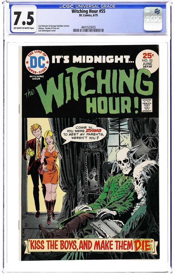 Starts Jan 26 4-page framing sequence with art by Neal Adams. Stories: "The Maze" (script by Al Gold and Marv Wolfman, art by Gray Morrow; 7 pages); "The Accursed Clay!" (script by Jack Miller, pencils by Jack Sparling, inks by Frank Giacoia); and "The Rush-Hour Ride of Abner Pringle!" (script by Len Wein, art by Jose Delbo). One-page text story, "the Witching Hour Mistree." Adams cover. 36 Pages, Full Color. Cover price $0.15.