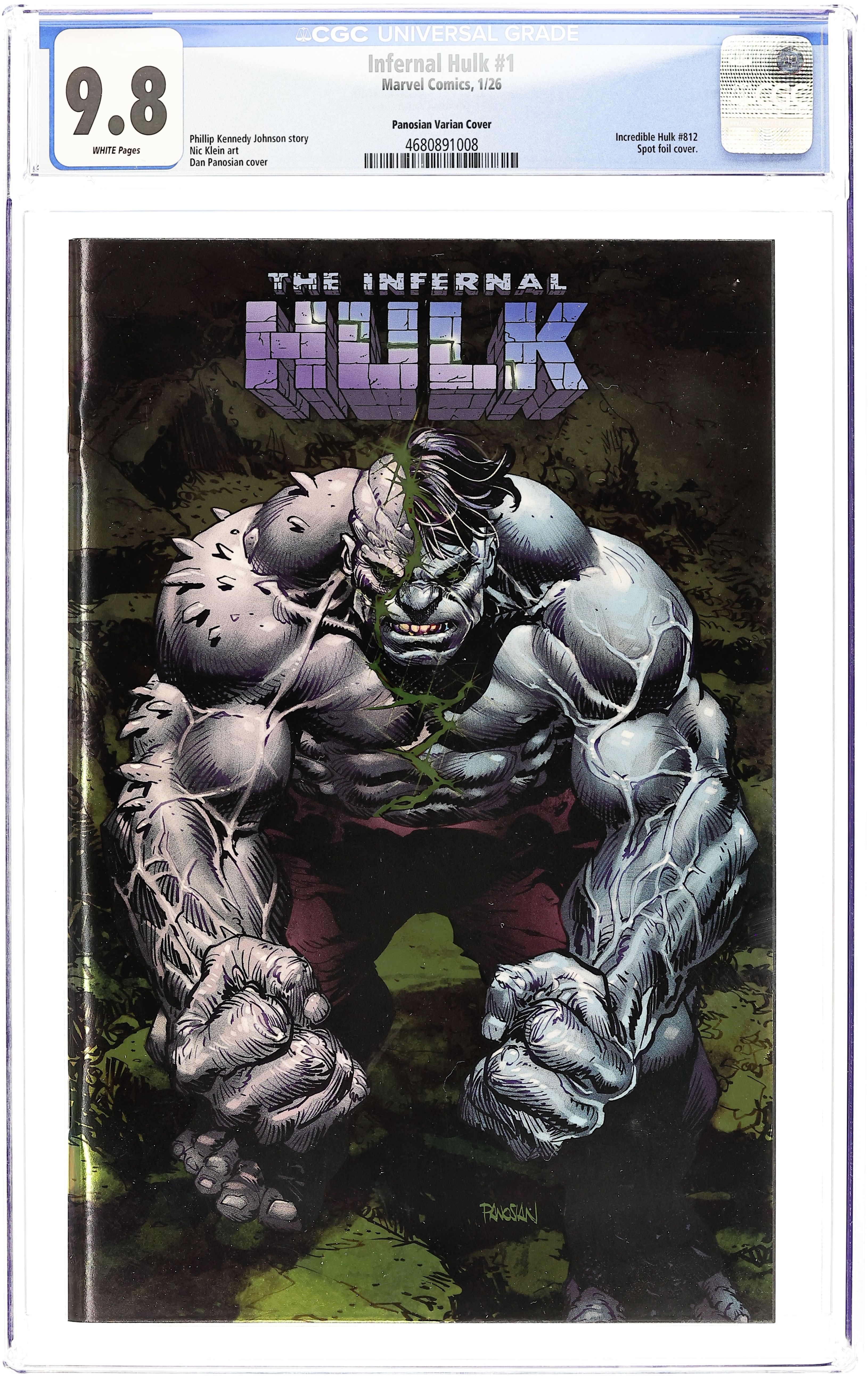 Turkish Edition. 1st printing. Variant Cover by Yildiray Cinar - limited to 500 copies. Volume 1 - "Yoksa İkisi Birden Mi? (Or is He Both?)". Collects Immortal Hulk (2018) #1-5 and material from Avengers (2017 7th Series) #684. Written by Al Ewing, Jim Zub, and Mark Waid. Art by Joe Bennett. Horror has a name. You'd never notice the man. He doesn't like to be noticed. He's quiet. Calm. If someone were to shoot him in the head...all he'd do is die. Until night falls - and someone else gets up again. The man's name is Banner. The horror is the Immortal Hulk! And trouble has a way of following them both. As reporter Jackie McGee tries to put together the pieces, Banner treads a lonely path from town to town, finding murder, mystery and tragedy as he goes. And what Banner finds, the Hulk smashes! Elsewhere, the hero called Sasquatch can't help but feel involved. In many ways, he's Banner's equal - and his opposite. Sasquatch is about to risk his life by looking for the man - and finding the monster! Manufactured with sticker on back cover. 6 3/8" X 9 1/2". 136 pages. Turkish Language.