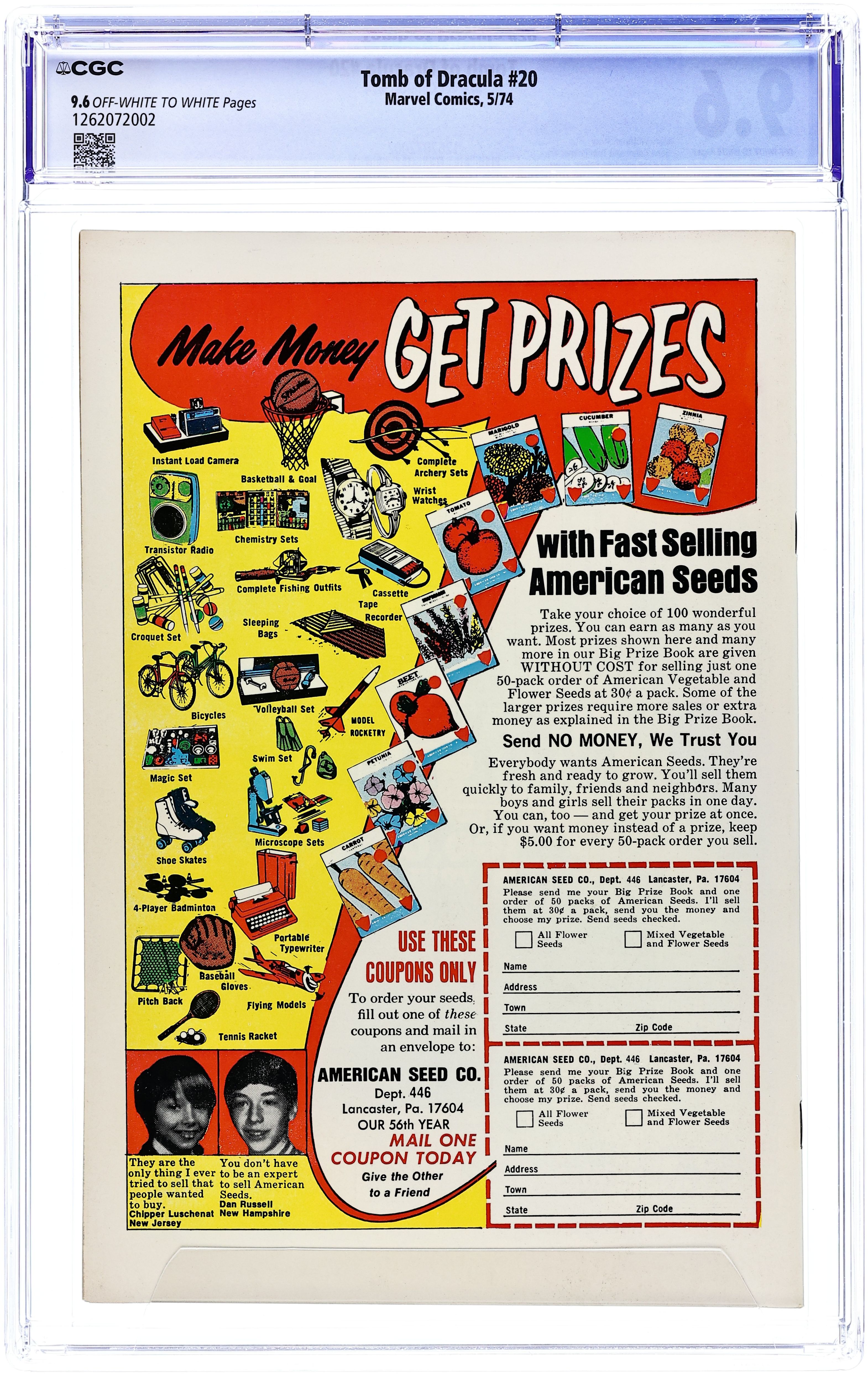 "To Kill a Vampire!" Written by Marv Wolfman. Art by Gene Colan and Tom Palmer. The slayers have finally tracked Dracula back to his layer, but can even this fierce team of vampire hunters destroy the most powerful vampire to ever stalk the earth? Plus, the origin of Blade! 32 pages, FC. Cover price $0.20.