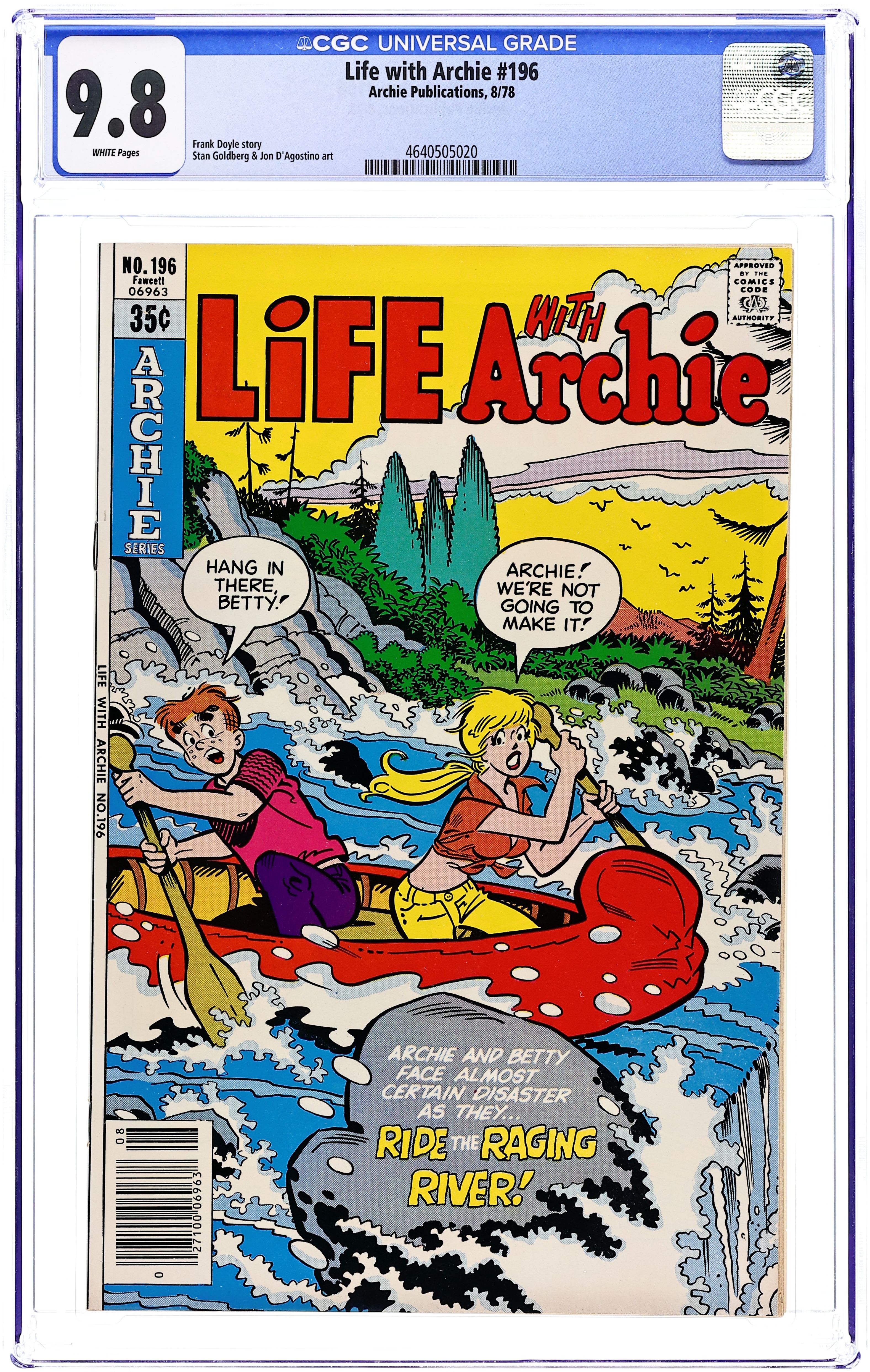 "The Voice of Villainy," script by Frank Doyle, pencils by Stan Goldberg, inks by Jon D'Agostino; A stage hypnotist uses a pager to hypnotize Mr. Lodge into giving him an expensive stamp from his collection. "Time After Time!" starring Li'l Jinx and Greg. Archie Club News. "Ride the Raging River: Part 1," script by Frank Doyle, pencils by Stan Goldberg, inks by Jon D'Agostino; Archie and Betty go canoeing on a really rough river; When the two lose control, Betty falls out, hits a rock, loses her memory, and is kidnapped by two men. "Ride the Raging River: Part 2," script by Frank Doyle, pencils by Stan Goldberg, inks by Jon D'Agostino; Archie finds Betty and rescues her from Clem and Zeke. 36 pgs., full color. Cover price $0.35.