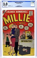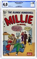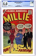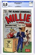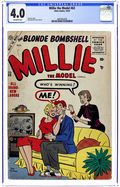 Stories by Stan Lee. Art by Dan DeCarlo and unknown. In this issue: Millie the Model in four untitled stories with art by Dan DeCarlo. Plus: untitled Hedy De Vine tale; untitled Nellie the Nurse tale; and 2-page text story "The Big Jump" (creators unknown), reprinted from Oscar Comics (1947) #6. 48 pages, full color. Cover price $0.10.