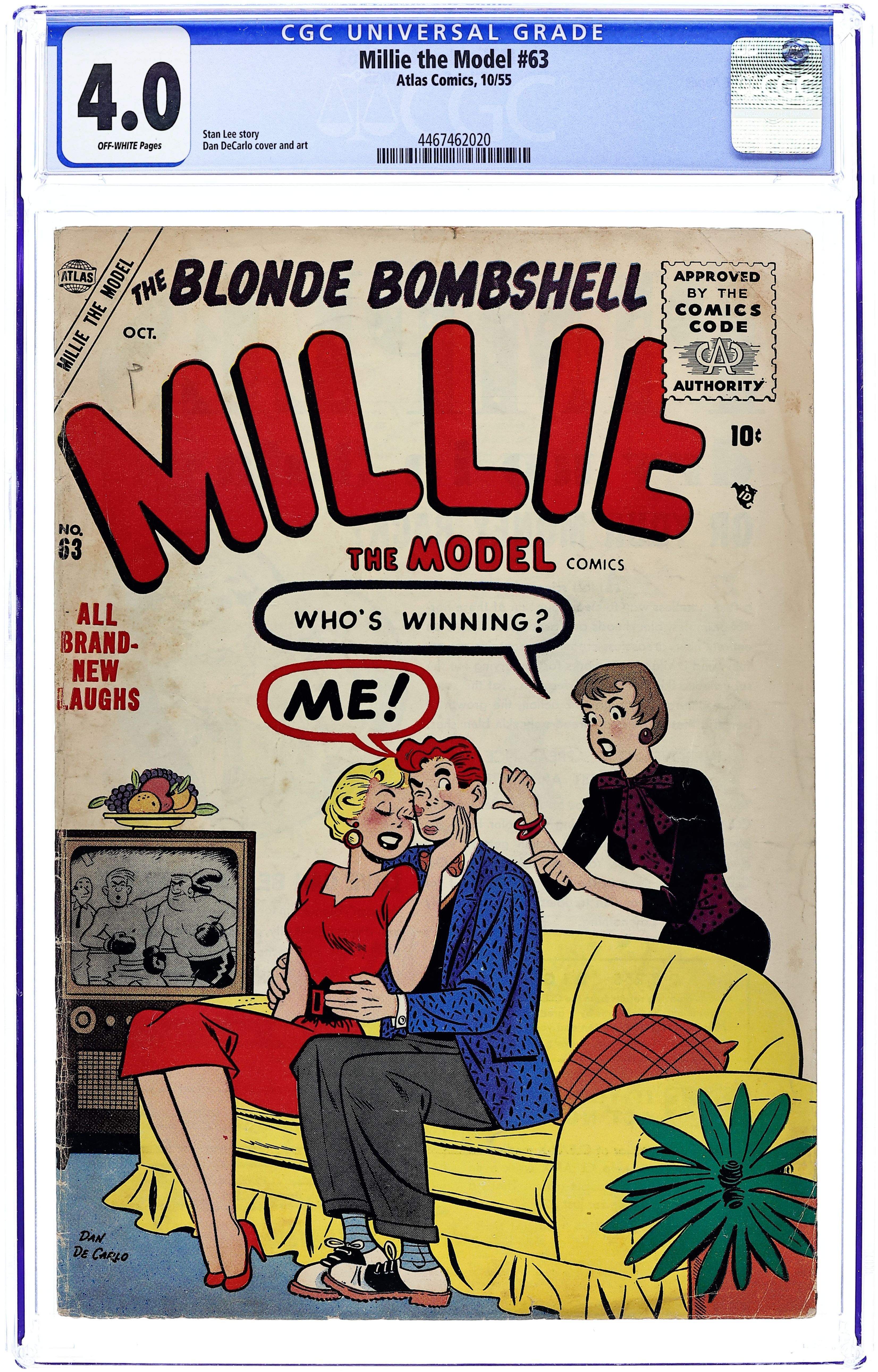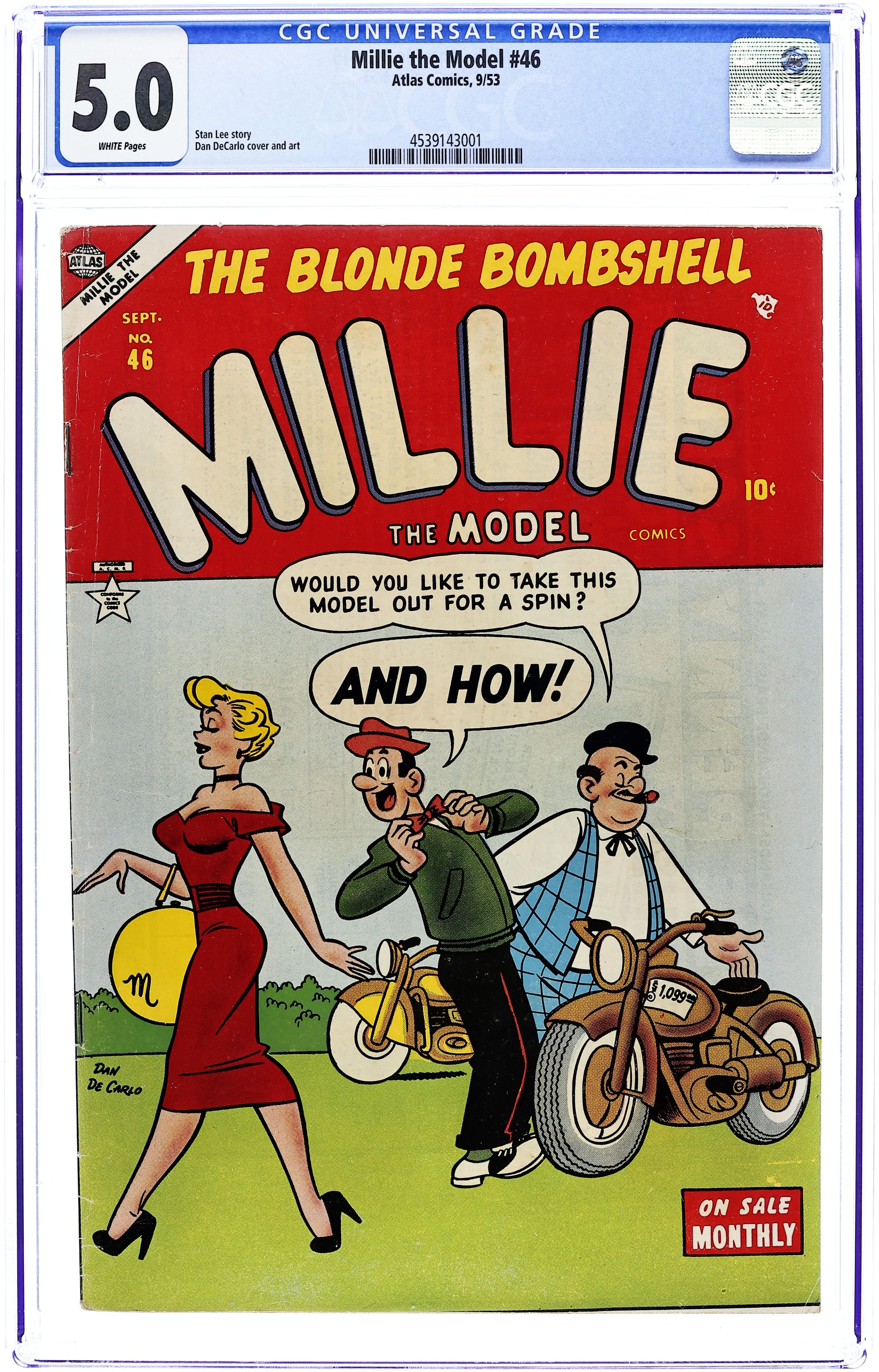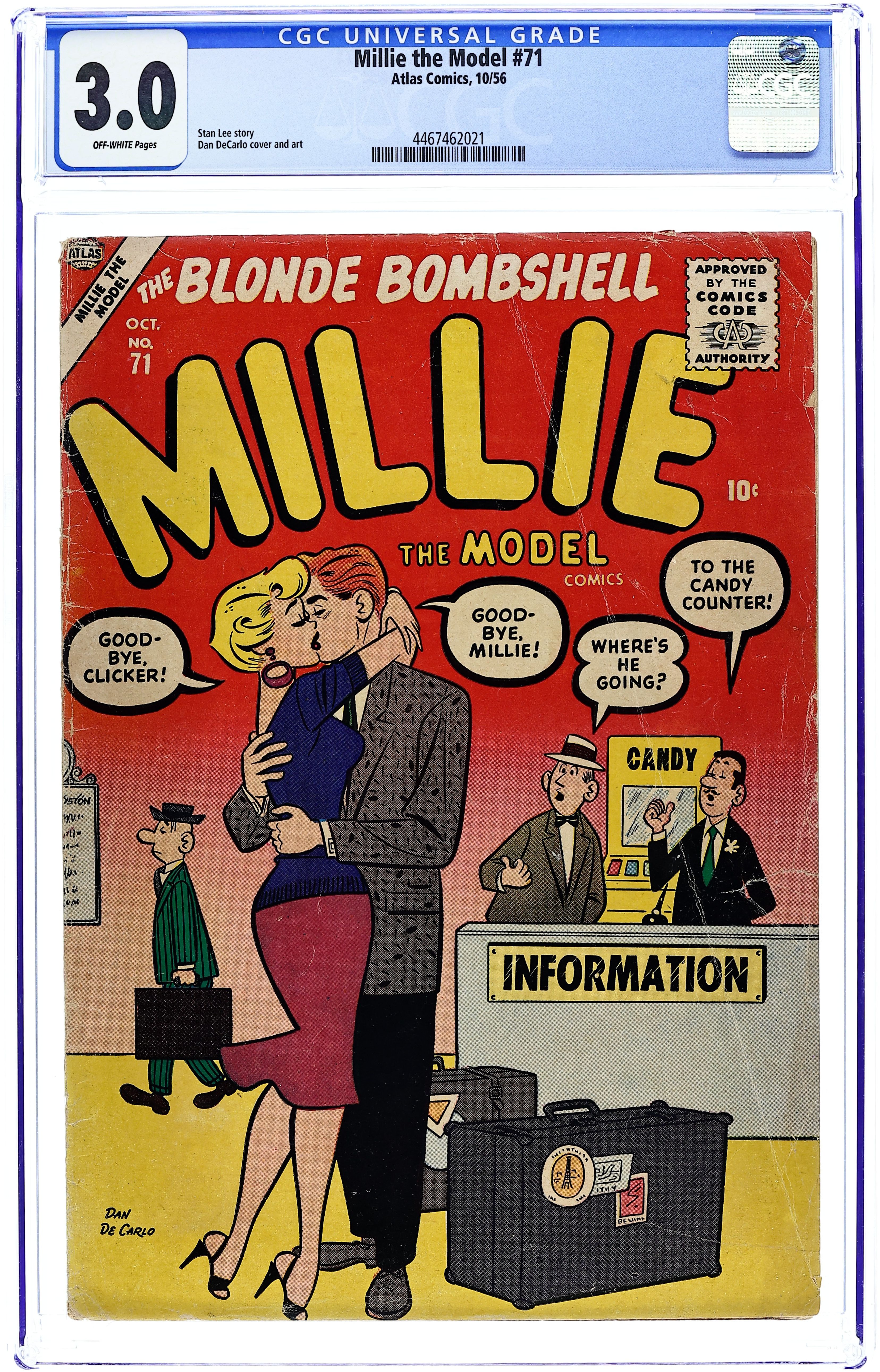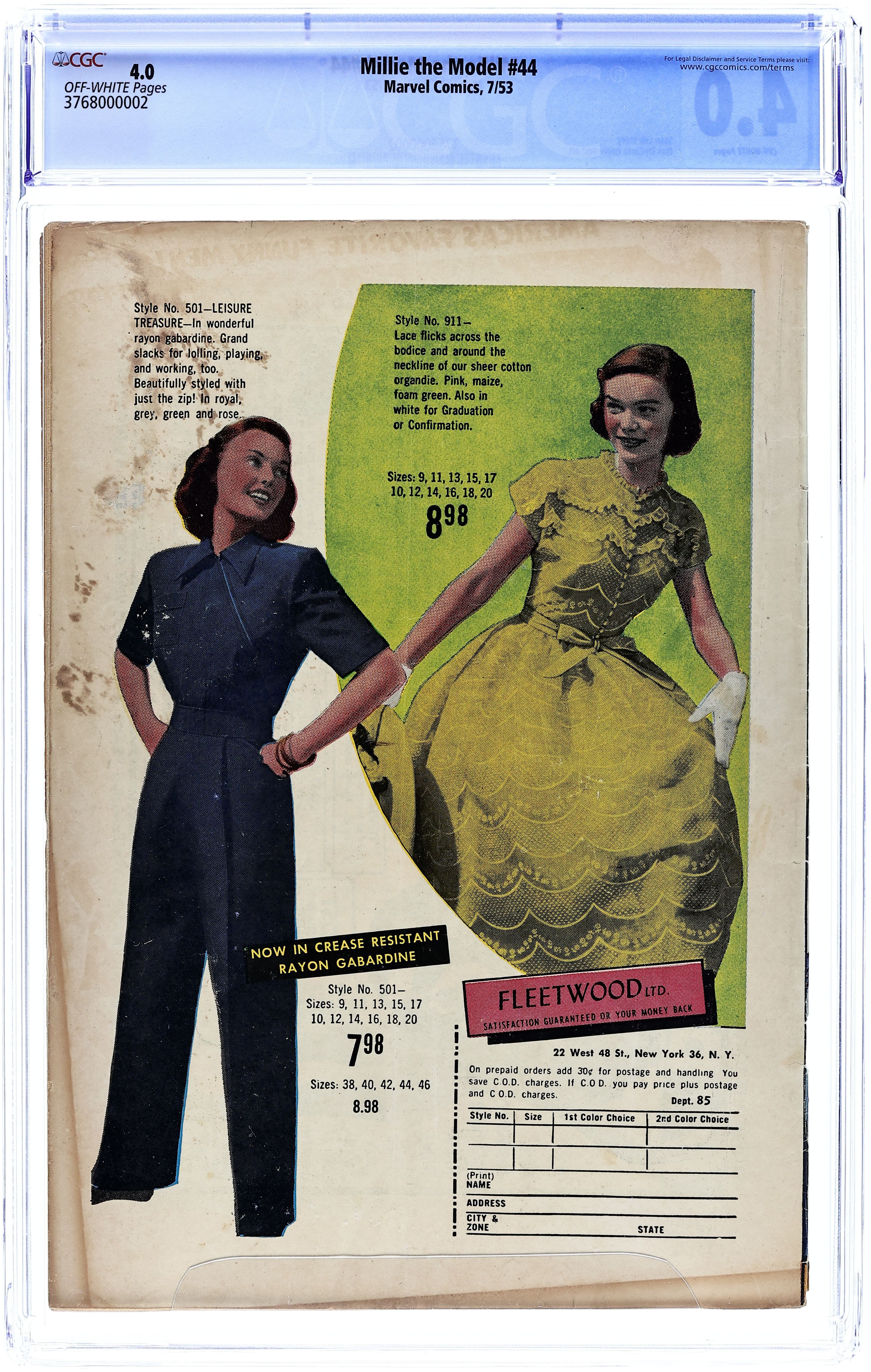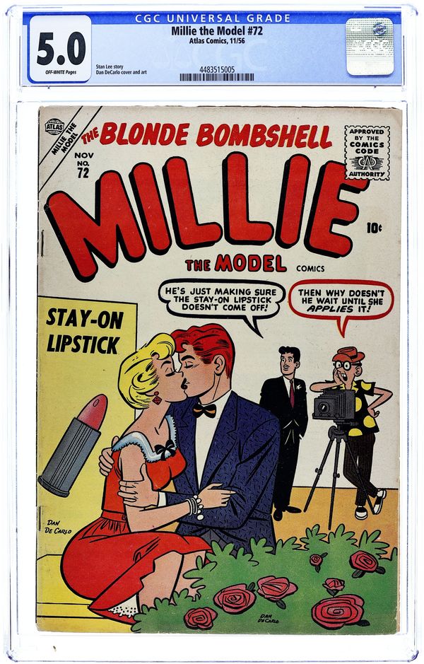 Stories by Stan Lee. Art and Cover by Dan DeCarlo. Millie the Model in: two untitled stories; "Millie Models..." 4-pager; three untitled 1-pagers; "Millie's Fashion Page" half-pager; and two untitled half-pagers. Plus: "Chili's Fashion Page" half-pager; 2-page text story "Mr. Carmichael" (writer unknown); and untitled My Girl Pearl story. 32 pages, full color. Cover price $0.10.
