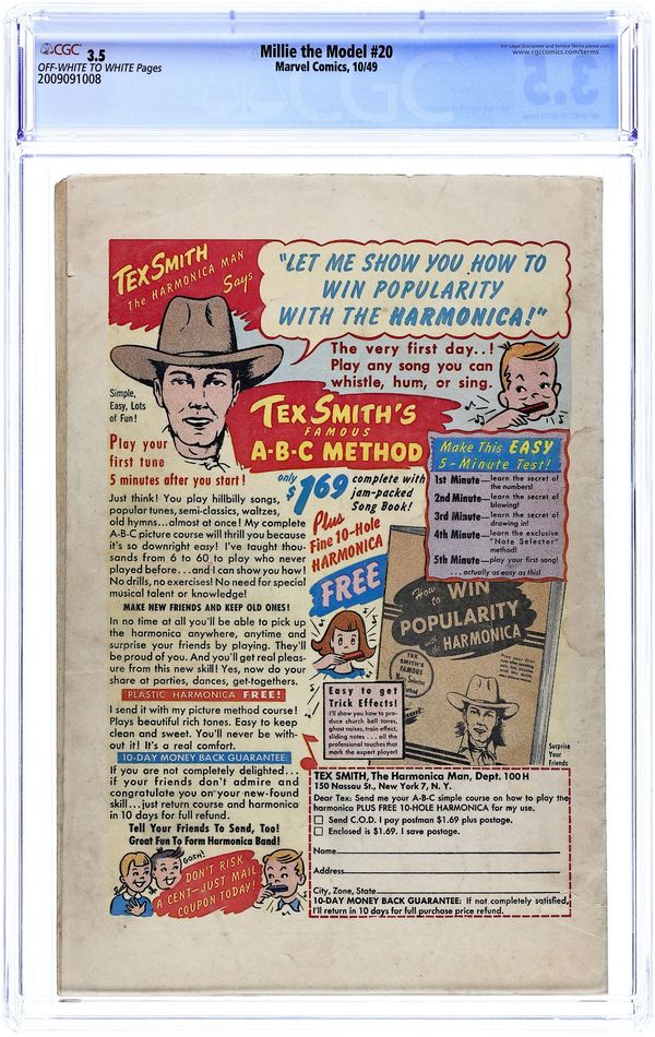 Cover art by Dan De Carlo. Untitled stories featuring Millie the Model and My Girl Pearl. Millie's Mirth-Quakes. Millie's Fashion Page. Millie's Pen Pals. Millie Models. A Date With Millie. Chili's Fashion Page featuring Chili the Dilly. When Millie Was a Lil' Monster. Stories by Stan Lee, art by Dan De Carlo. Music Lover text story. 36 pgs. $0.10. Cover price $0.10.