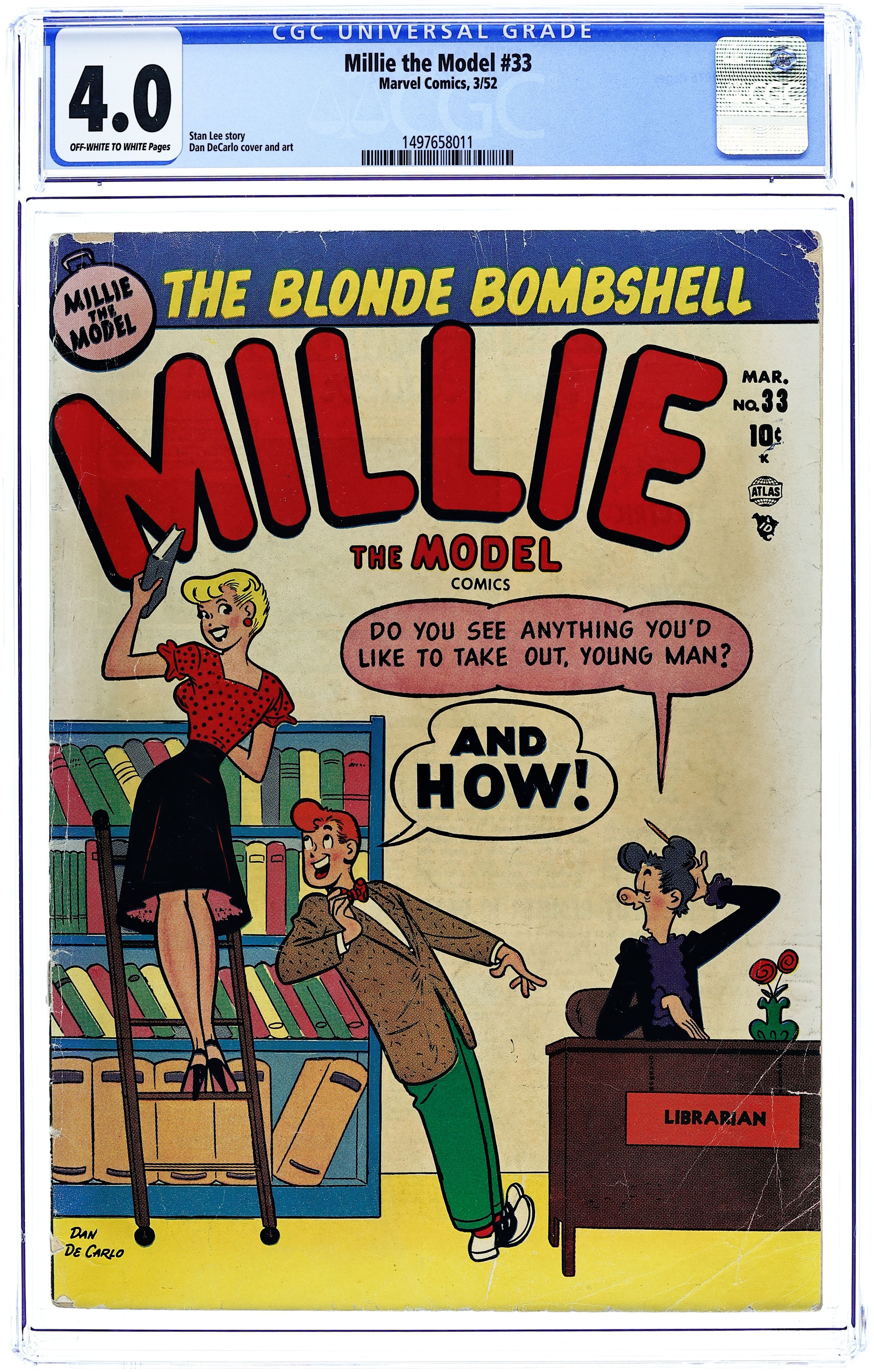 Stories by Stan Lee. Art and Cover by Dan DeCarlo. In this issue: Millie the Model in three untitled stories and five untitled 1-pagers. Plus: untitled Chili story. 32 pages, full color. Cover price $0.10.