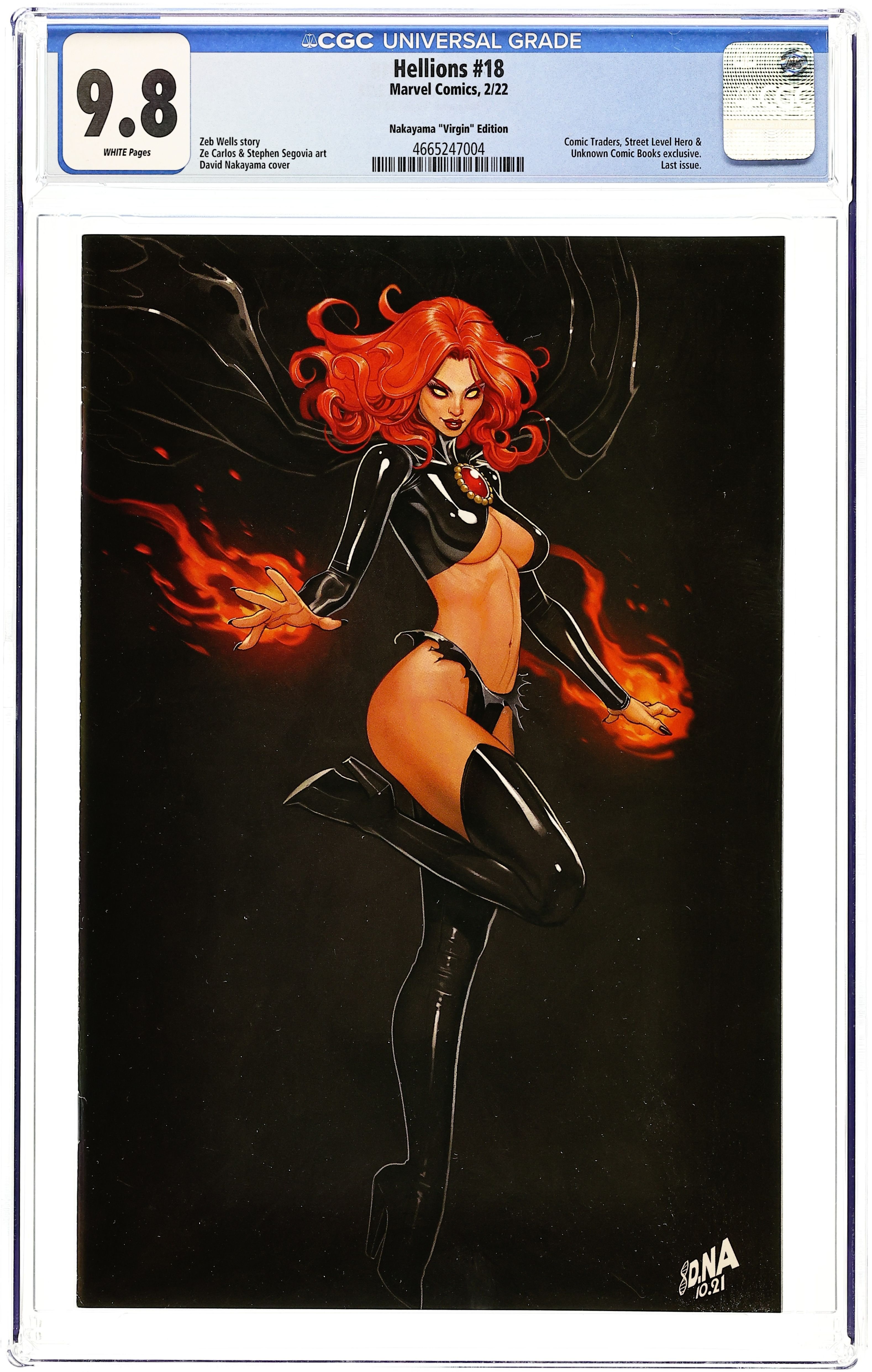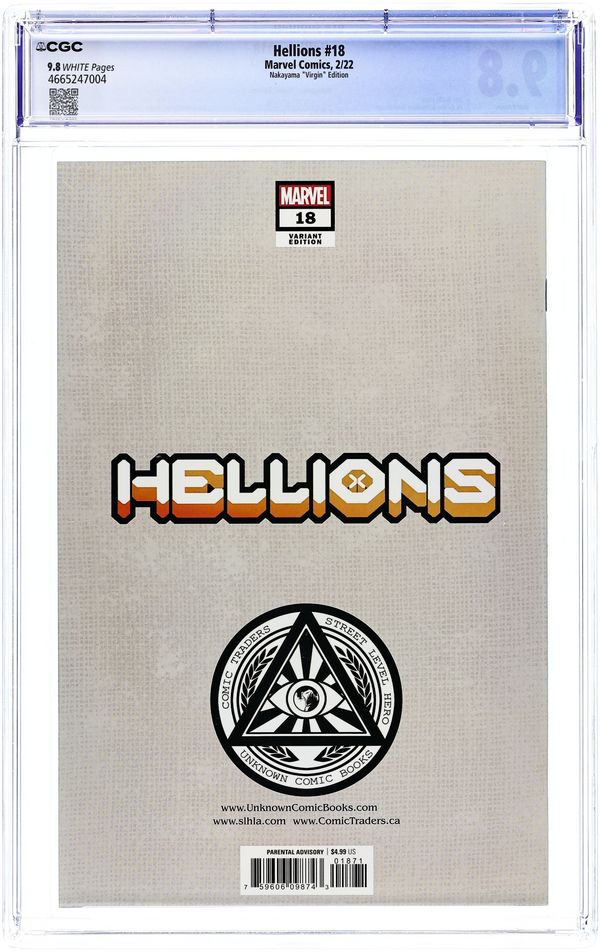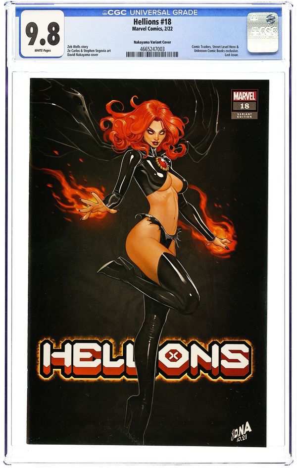 Comics Illuminati (Unknown Comics, Street Level Hero, and Comic Traders) exclusive virgin cover by David Nakayama. Written by Zeb Wells. Art by Ze Carlos and Stephen Segovia. HELLIONS NO MORE! ORPHAN-MAKER has committed a horrible crime. As he faces the ultimate penalty, the cracks in the HELLIONS team are on full display. Secrets, betrayals, alliances and loss all come to the surface as the fallout of Orphan-Maker's actions threatens to end all the Hellions have worked toward! Plus: The return of a fan-favorite X-character in a decision that will rock the foundation of Krakoa! 36 pages, full color. Parental Advisory