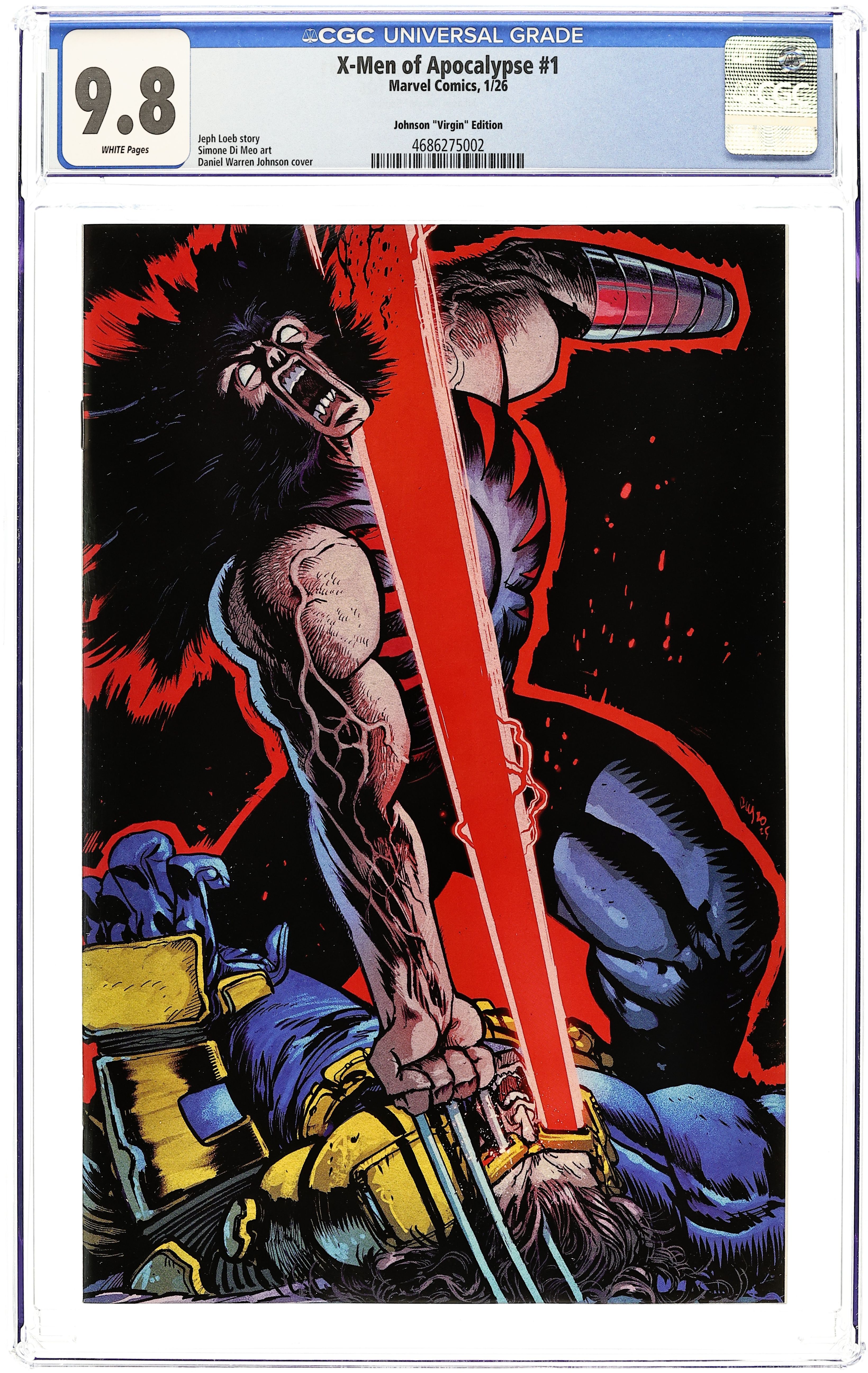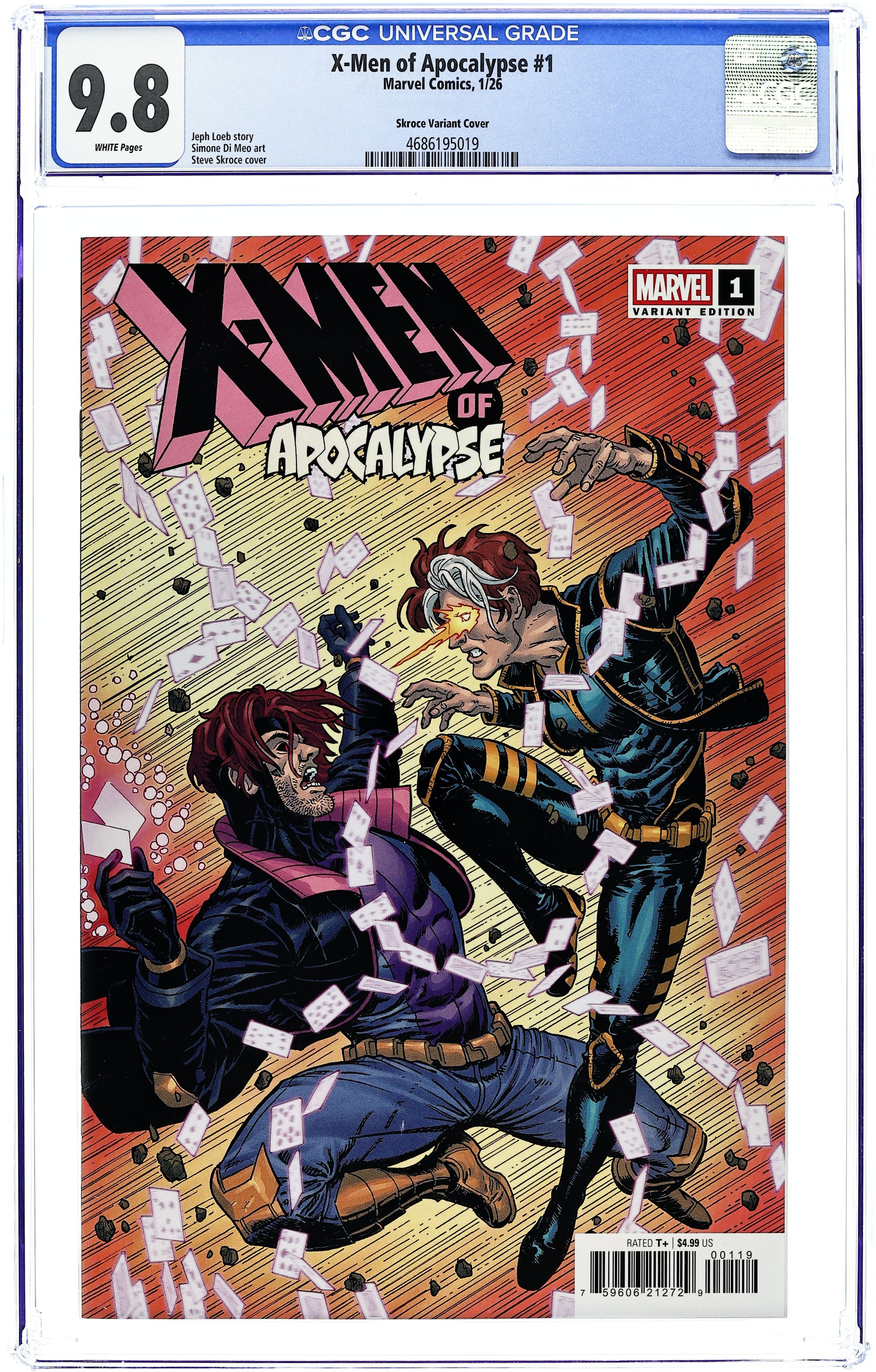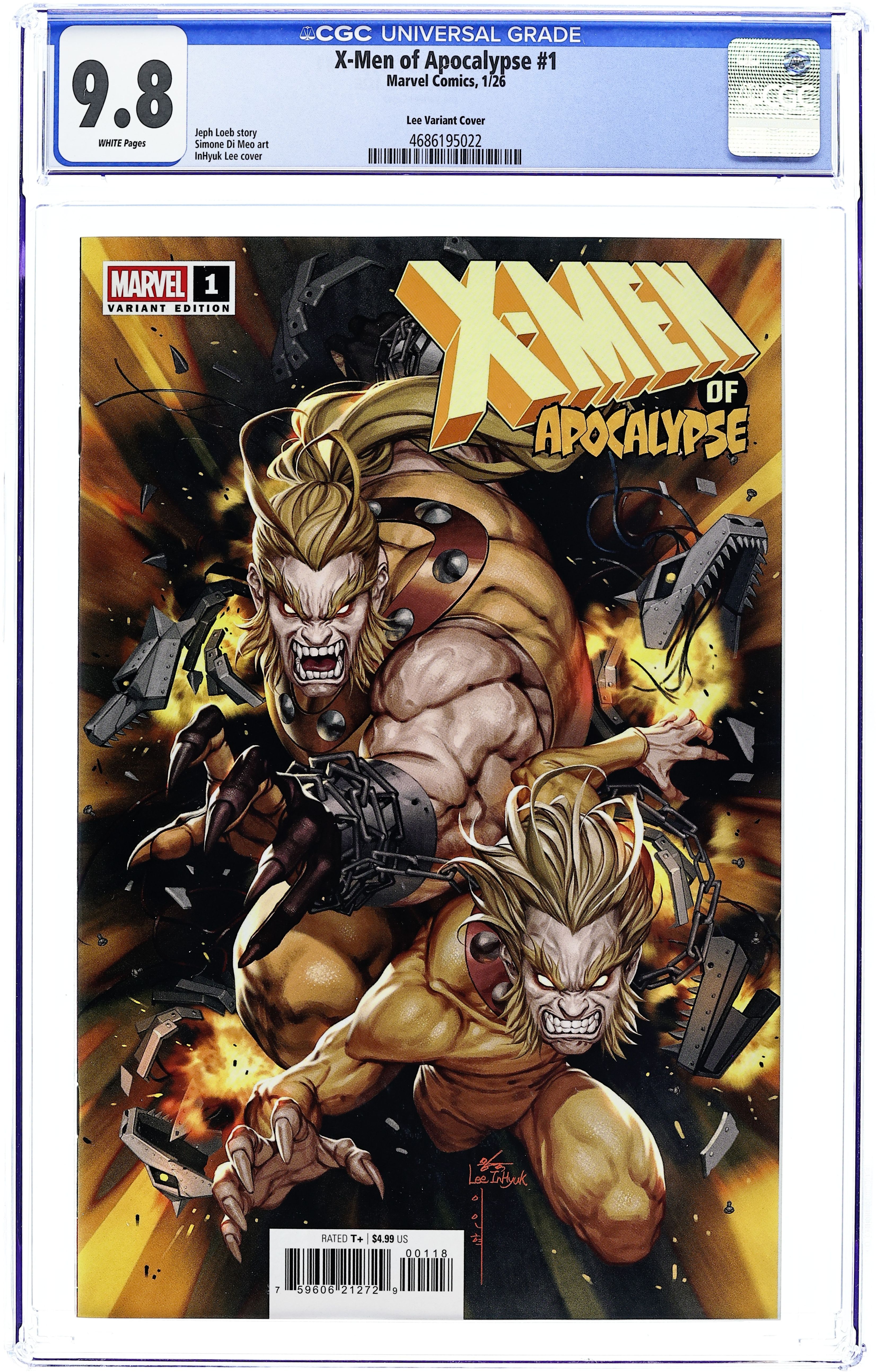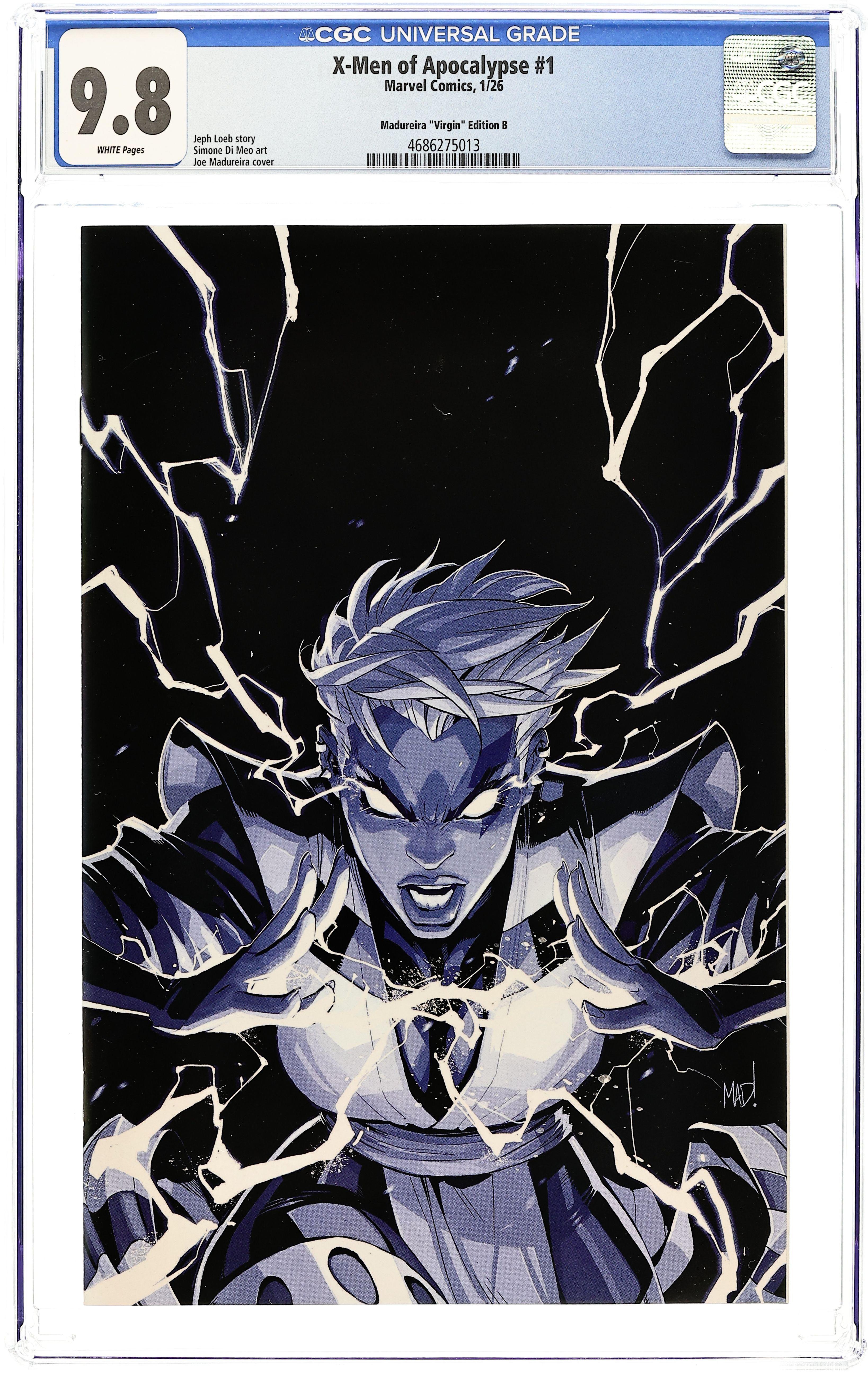 Limited 1 for 200 Retailer Incentive Variant Cover. Written by Jeph Loeb. Art by Simone Di Meo. Cover by Joe Madureira. THE X-MEN OF APOCALYPSE CRASH INTO THE MAIN MARVEL UNIVERSE! A dystopian future created when Charles Xavier was killed, AGE OF APOCALYPSE is home to a war-torn group of X-Men led by Magneto. In order to free their Earth from Apocalypse's cruel reign, they were willing to sacrifice their very existence-or so they thought! The main timeline was restored, Apocalypse was defeated, but their world lived on! Taking place in the direct aftermath of the original crossover's explosive finale, X-MEN OF APOCALYPSE reignites the mission of this iconic reality's X-Men as they journey here to ensure their universe's survival. This desperate mission will take them into the main Marvel Universe, where they will come into conflict with their classic counterparts, forever impacting both team's destinies! 40 pages, full color. Rated T+ Cover price $5.99.