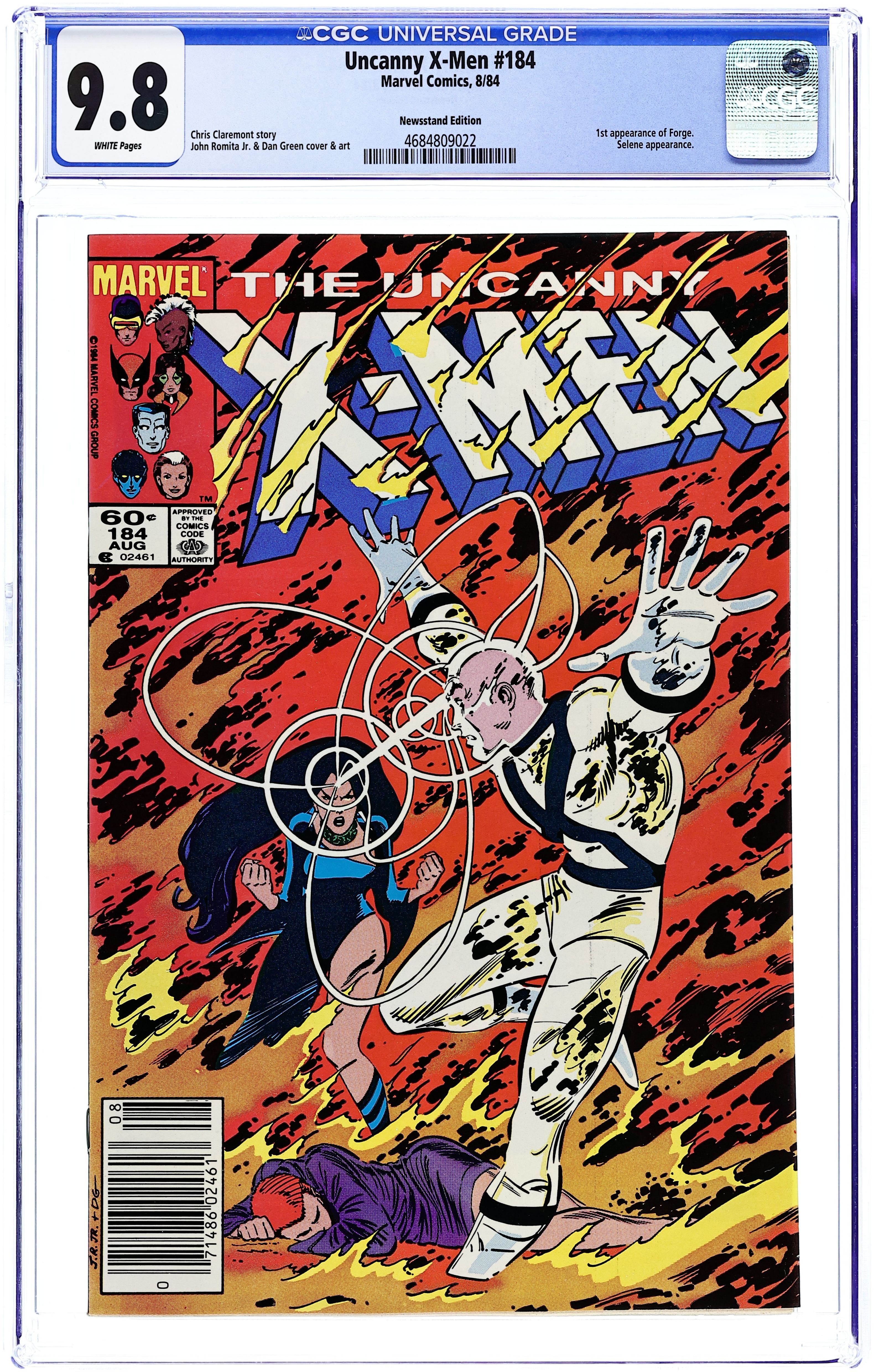 Newsstand Edition. "The Past...of Future Days!" Story by Chris Claremont. Art by John Romita, Jr. and Dan Green. In light of the U.S. Government's passing of the Mutant Control Act, a weapon to deal with the situation is created by one of their own. Valerie Cooper and Raven Darkholme (a disguised Mystique) enlist the help of the man called Forge. Plus, Rachel Summers (last seen in the classic "Days of Future Past" storyline from Uncanny X-Men #141-142) has arrived in the present searching for the X-Men, but instead comes face-to-face with the psychic-vampire Selene! Note: First appearance of Forge. 36 pgs. Cover price $0.60.