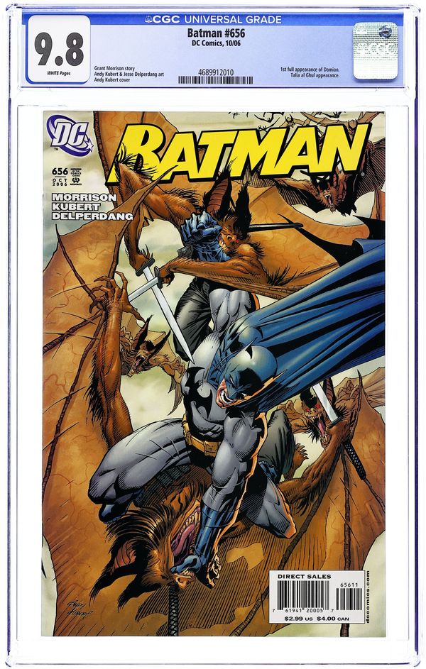 Written by Grant Morrison. Art by Andy Kubert & Jesse Delperdang. Cover by Kubert Part 3 of the 4-part. "Batman and Son," by the incomparable team of writer Grant Morrison and artists Andy Kubert & Jesse Delperdang! Batman brings his son home to Gotham City and introduces him to both Wayne Manor and the Batcave! But when Batman's new son meets Robin sparks ? and swords ? will fly! 36 Pages, Full Color. Cover price $2.99.
