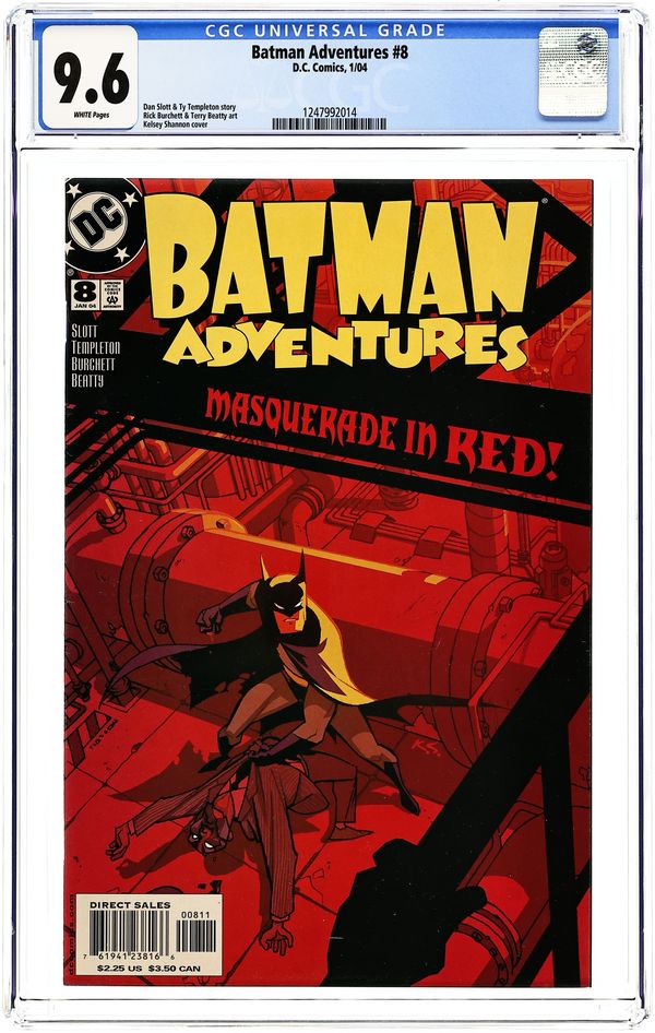 WRITTEN BY TY TEMPLETON AND DAN SLOTT. ART BY RICK BURCHETT, TERRY BEATTY AND TEMPLETON. COVER BY BRUCE TIMM. Hunted mercilessly by shadow assassins, The Riddler turns to Batman for help ? but even a Riddler on good behavior can't resist playing games with the Dark Knight. Plus, in a 5-page back-up story, follow a day in the life of Gotham's new mayor: The Penguin! What's this fowl fiend up to behind closed doors? Featuring the second of four covers by Warner Bros. animation producer Bruce Timm! FC, 32 PGS. Cover price $2.25.
