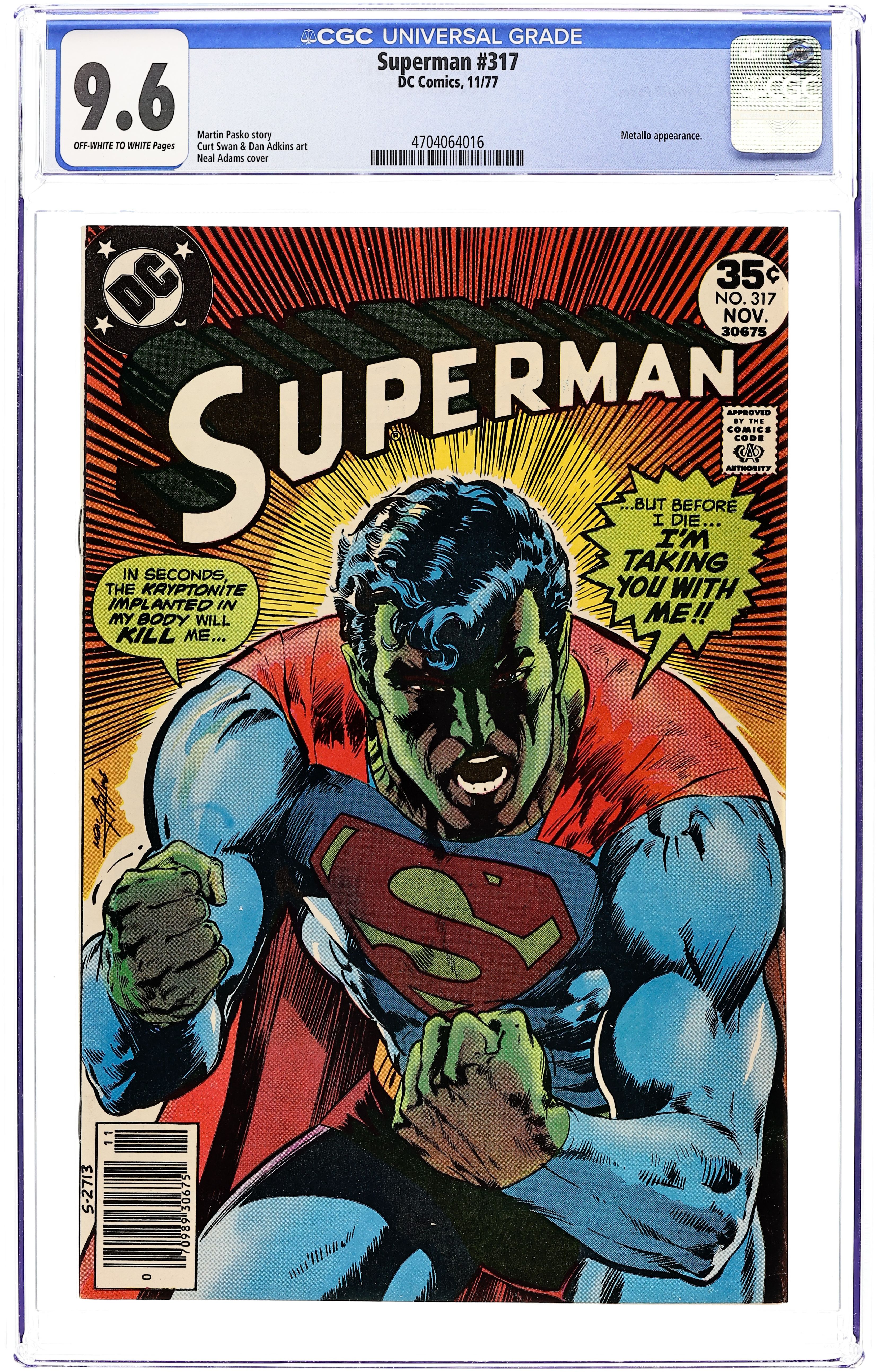 First 30c cover-priced issue. Cover art by Bob Oksner. Clark Kent, Get Out of My Life!, script by Cary Bates and Elliot S! Maggin, pencils by Curt Swan, inks by Bob Oksner; Superman tries to live his life as Clark Kent only; he also battles Solarman; Xviar breaks into Clark's apartment. Justice for All Includes Children public service announcement, art by Neal Adams; Superman teaches kids not to fear the police. 36 Pages, Full Color. Cover price $0.30.
