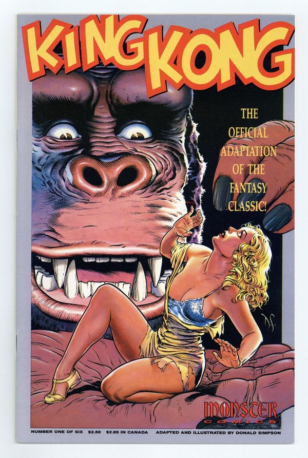 $33.00Cover by Dave Stevens. Stories and art by Don Simpson. Denham's Quest. Fantagraphics' Monster Comics imprint serves up Don Simpson's adaptation of the 1932 King Kong novelization, with eye-catching covers by some great gorilla artists. Director Carl Denham is famous for his "Bring 'Em Back Alive" style of filmmaking. But when he takes his crew and beautiful leading lady Ann Darrow to Skull Island, they find a bigger beast than they bargained for. Cover by legendary artist Dave Stevens of Rocketeer fame. 36 pages, B&W. Cover price $2.50.