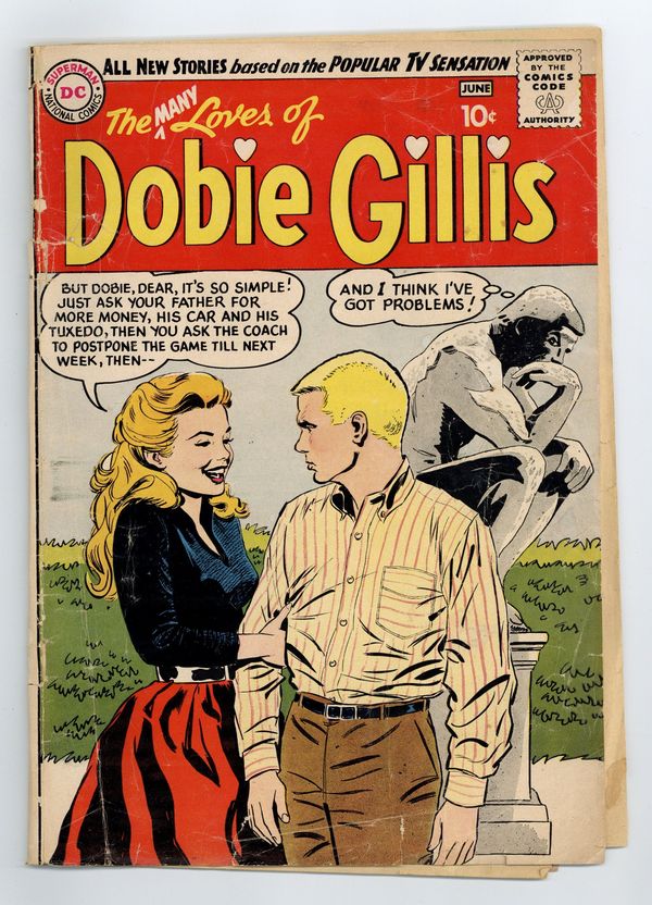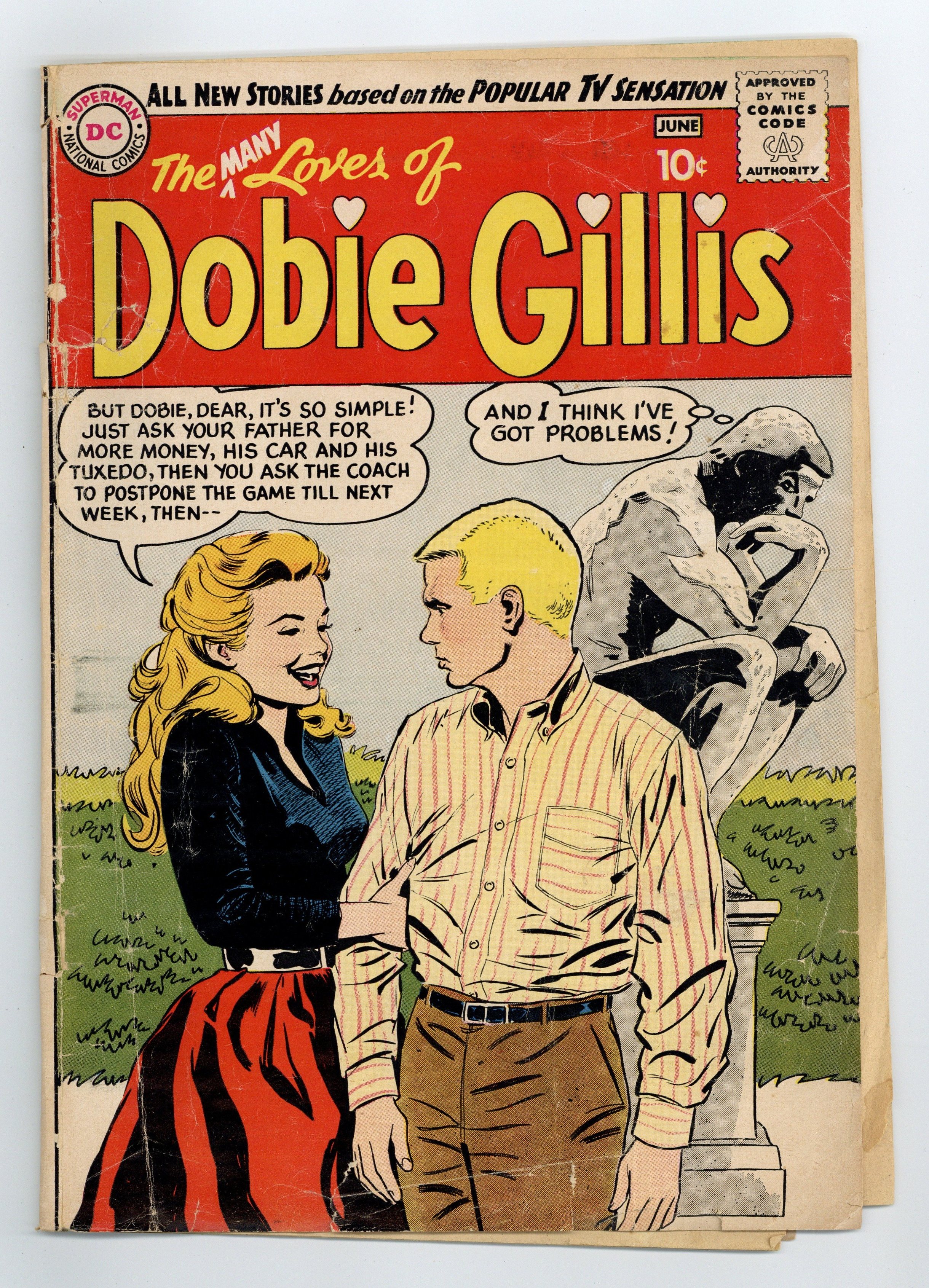 Written by unknown. Art by unknown. Featuring: The Many Loves of Dobie Gillis tale "Miss Grocery Queen 1960!" (complete in two parts); Dobie's Pal Buddy Maynard back-up story; Teen Laffs 1-pager by Henry Boltinoff; 1-page text piece "Meet Dwayne Hickman"; "Tina Teen Writes..." 1-pager; "Tennis Anyone?" 1-pager; and 1-page public service announcement "What's Wrong with These Pictures?" by Jack Schiff and Bernard Baily. 32 pages, full color. Cover price $0.10.