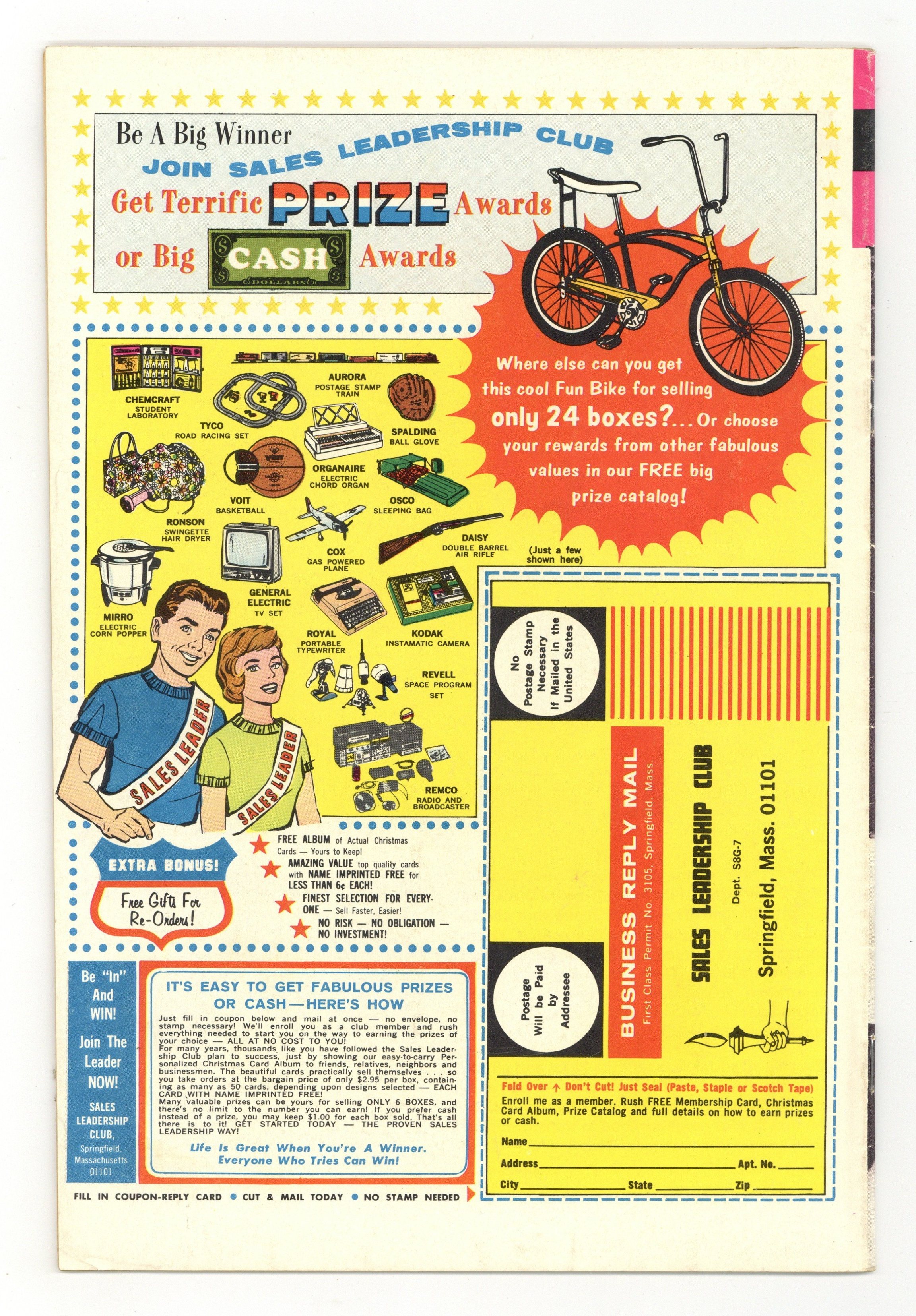 $30.00#01-828-208 on cover. Photo cover of Moe Howard, Larry Fine, Curly Joe DeRita, and Samson Burke (as Hercules). "The Three Stooges Meet Hercules," art by Sparky Moore; Three goofy druggists travel back to Ancient Greece on a wimpy inventor's time machine; Adapted from the 1962 feature film of the same name. There are two different back covers for this issue. One is a Pin-Up, the other is ads for the Three Stooges Fan Club and for purchasing autographed photos. 36 pages, full color. Cover price $0.15.