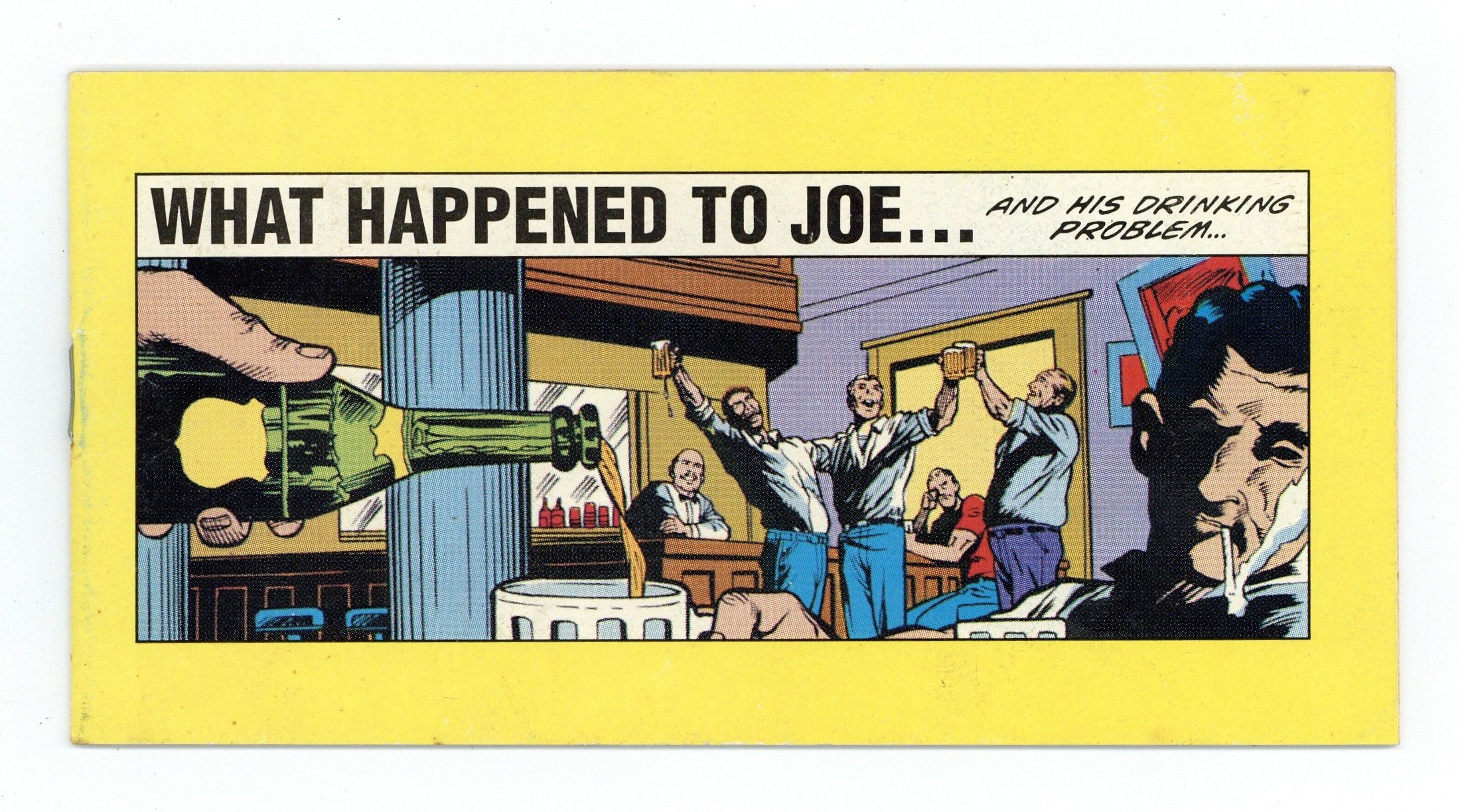 Starts Jan 3 1967 Edition. What Happened to Joe and His Drinking Problem (1967) is a promotional comic book distributed by Alcoholics Anonymous. Joe has a great job, a great wife, and great friends, but Joe has a problem--he drinks too much. 28 pages, full color, 6.75-in. x 3.5-in., with no cover price.
